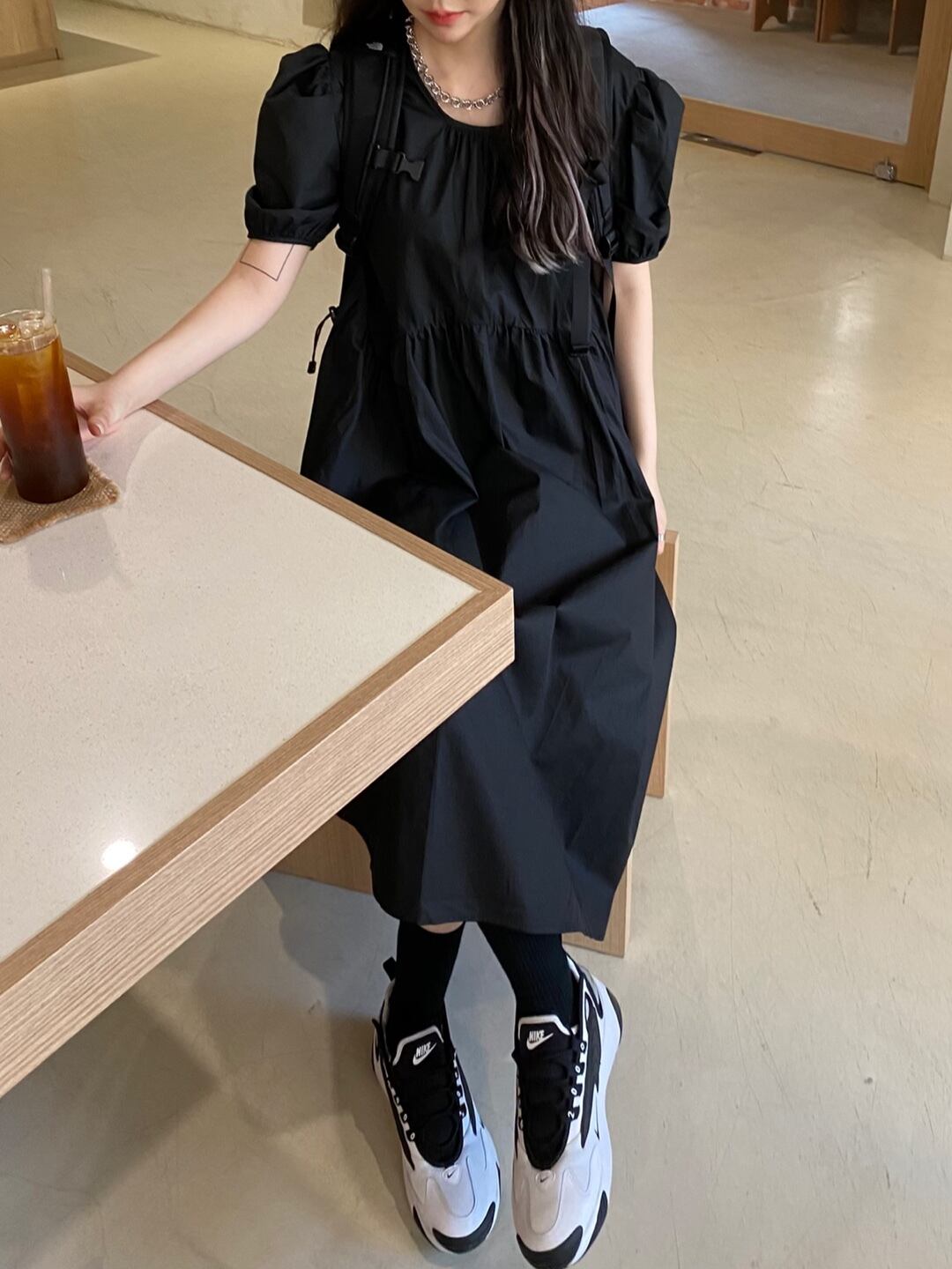スリーブスタイルドレス サマーブラックロングスカート 夏物 韓国婦人79097881176