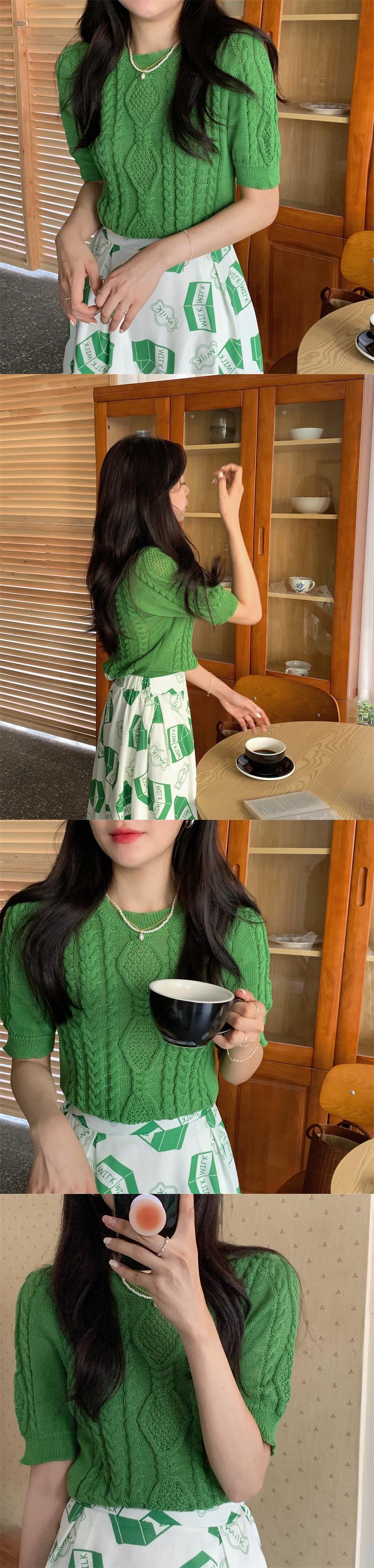 サマーセーター プリント柄スカート 大人ガーリー スウィート キュート カジュアル 夏物 韓国婦人86730464242