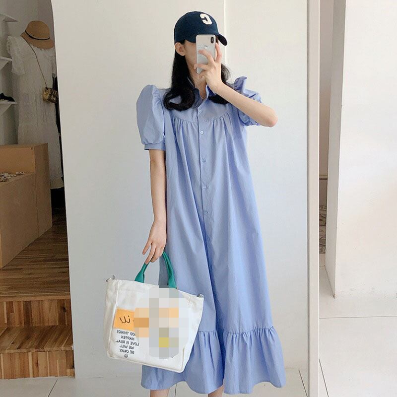 サマースリーブルーズロングシャツ ドレス レディース 夏物 韓国婦人85393069908