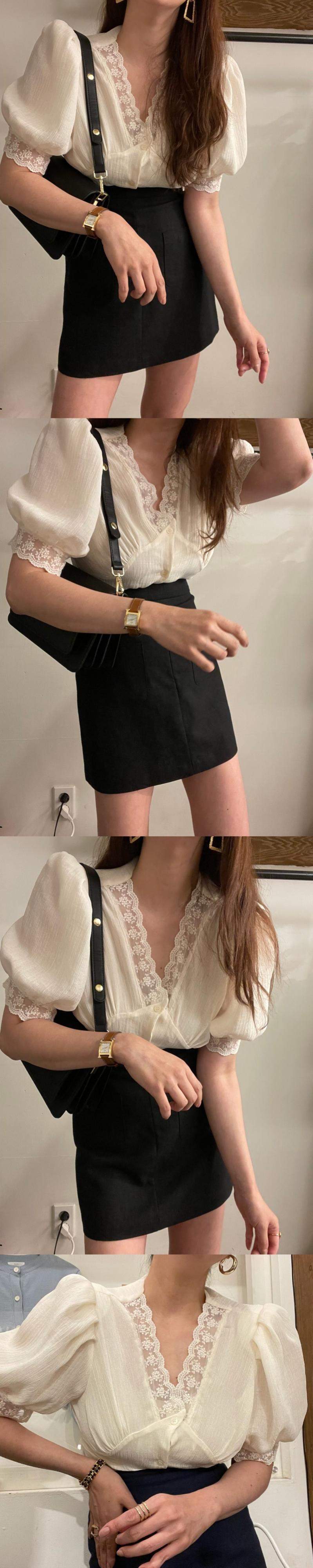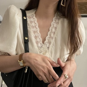 サマースタンダードVネックレーススリーブシフォンシャツ トップス レディース レトロ 夏物 韓国婦人88568024028