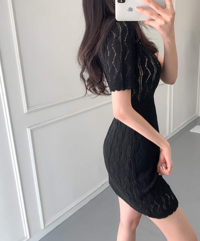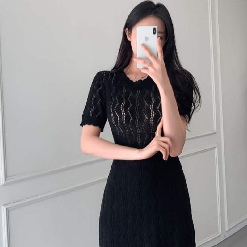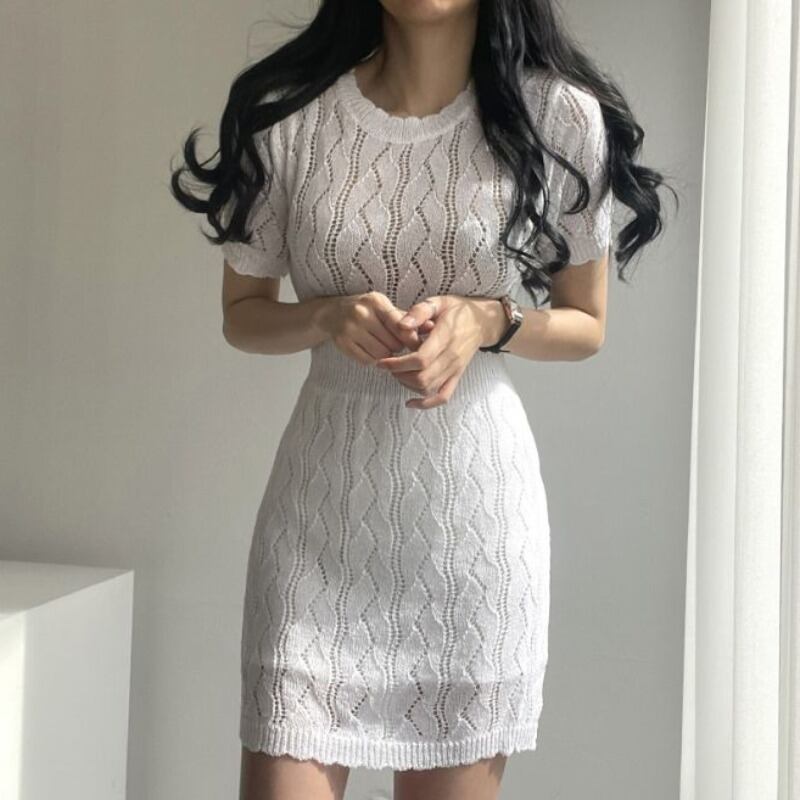 サマーラウンドネックスリムニットドレス 夏物 Oネック シルク 韓国婦人39908325354