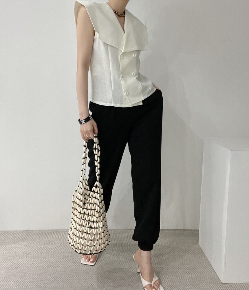サマーダブルブレストノースリーブシャツ レディース 夏物 韓国婦人66181708346