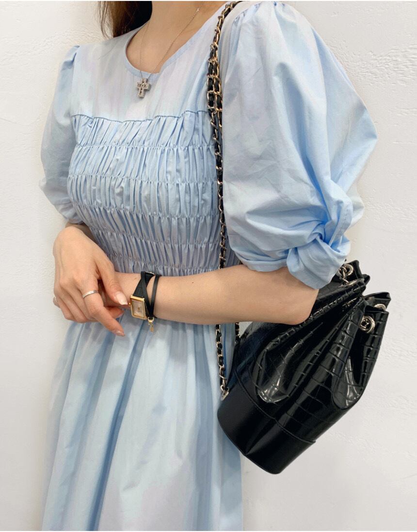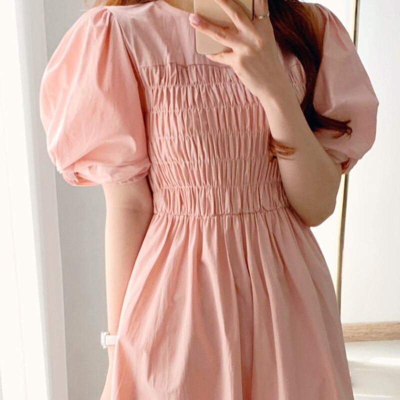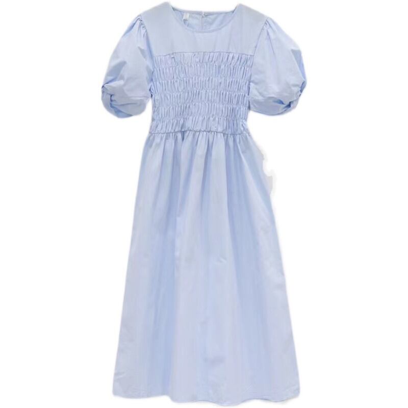 サマースタンダードスリーブルーズロングドレス レトロ 夏物 韓国婦人57811811390