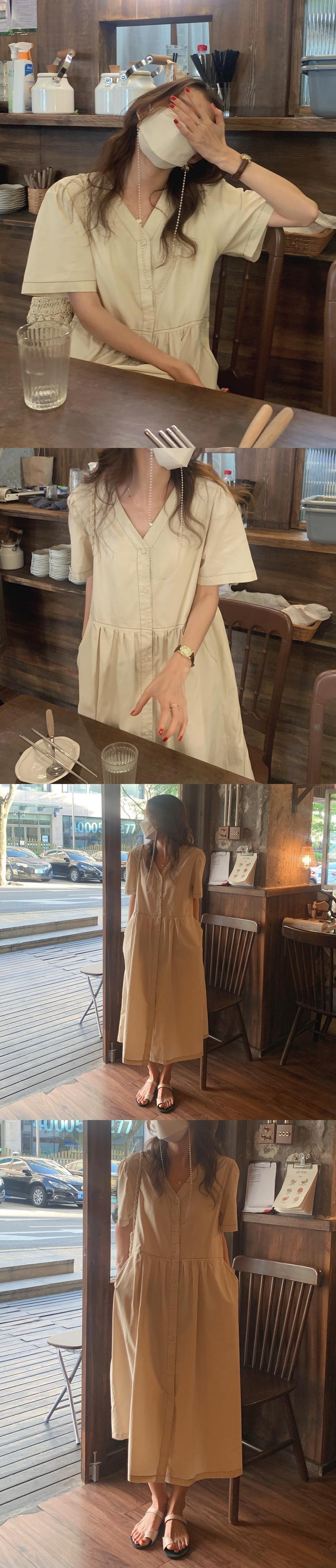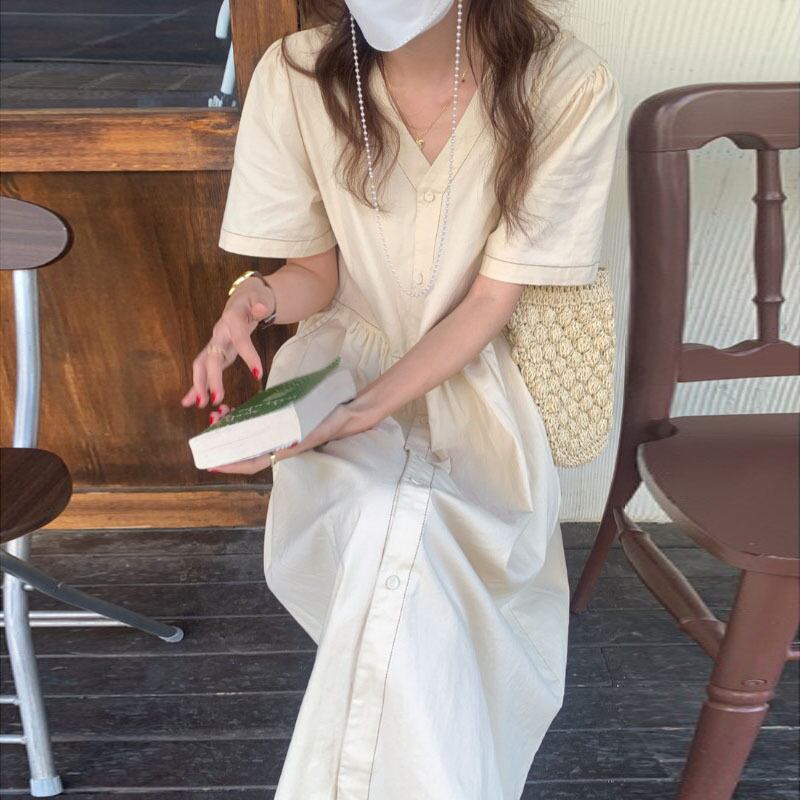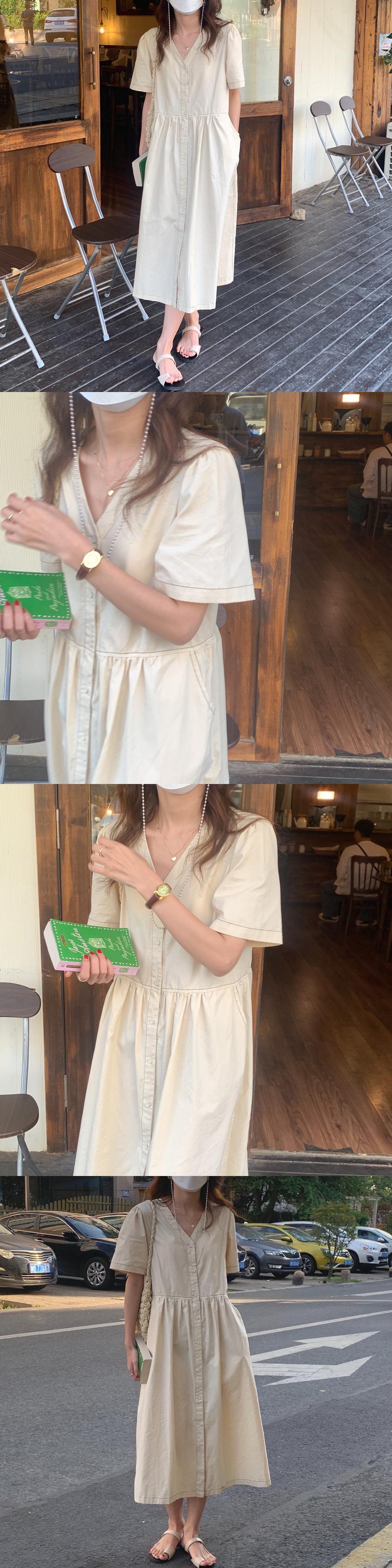 サマーカラーラインVネックルーズドレス レディース 夏物 韓国婦人11288699079