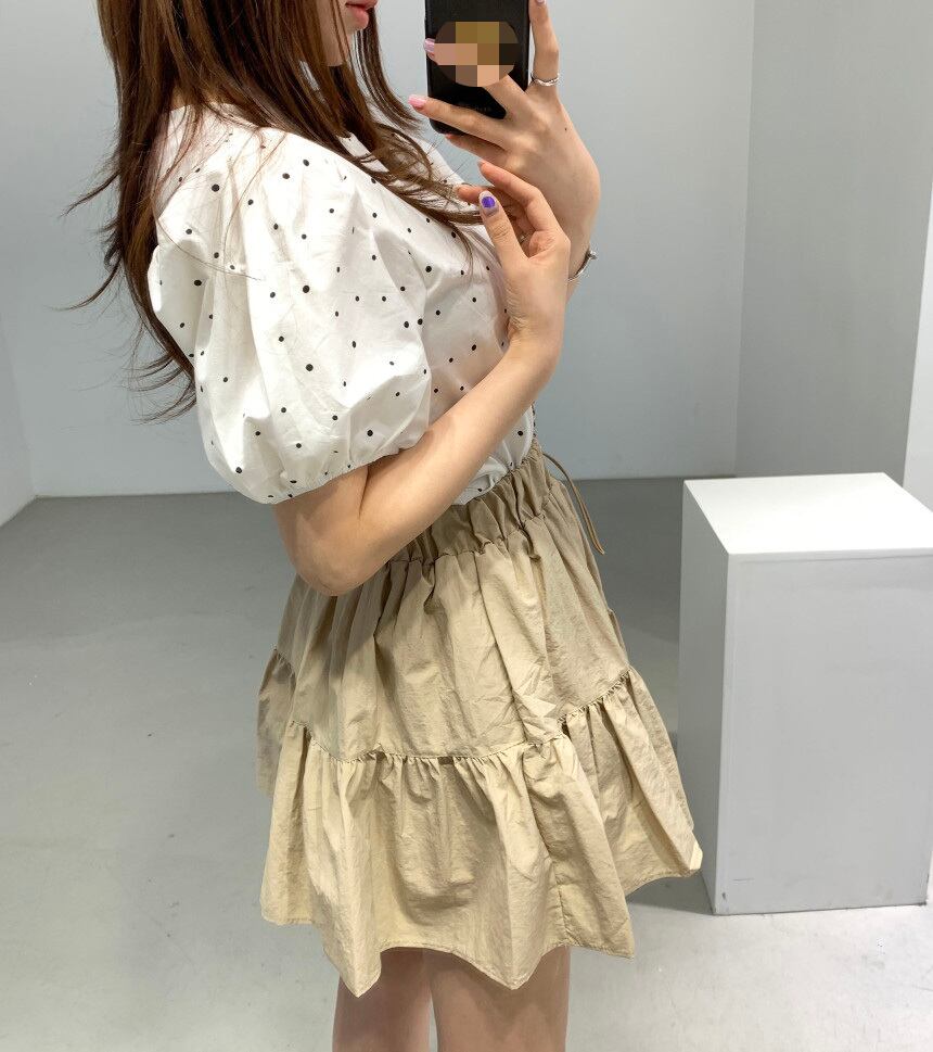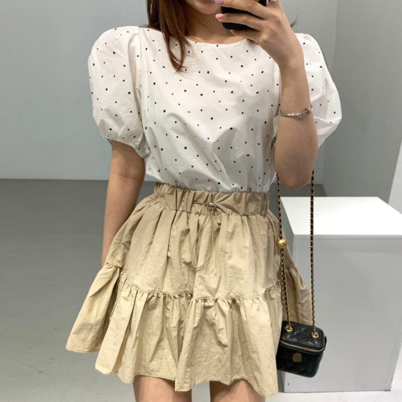 サマー水玉スリーブシャツ ギャザースカート 大人ガーリー スウィート キュート カジュアル 夏物 パニエ ペチコート 韓国婦人90471203635