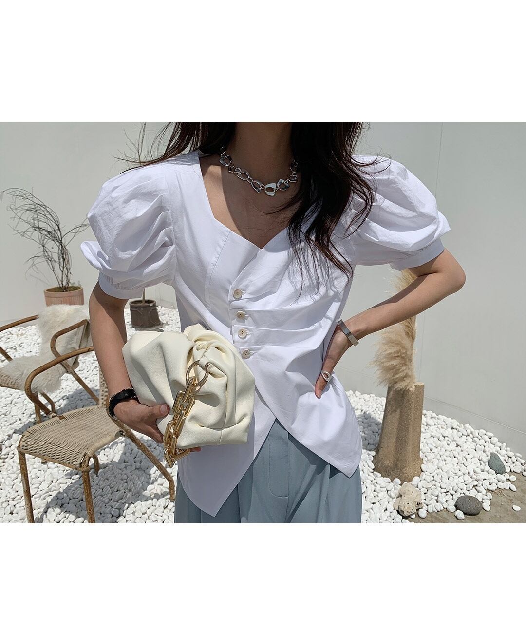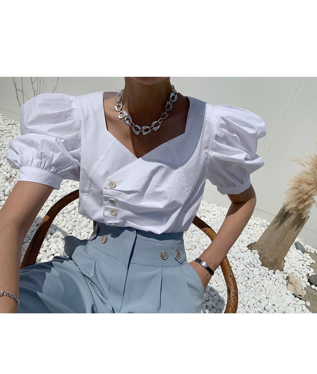 サマープリーツスリーブホワイトシャツ レディーススタンダードスタイルトップス レトロ 夏物 韓国婦人37291993448