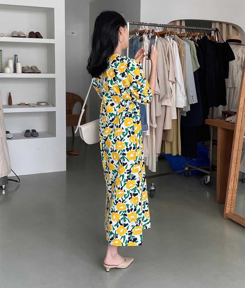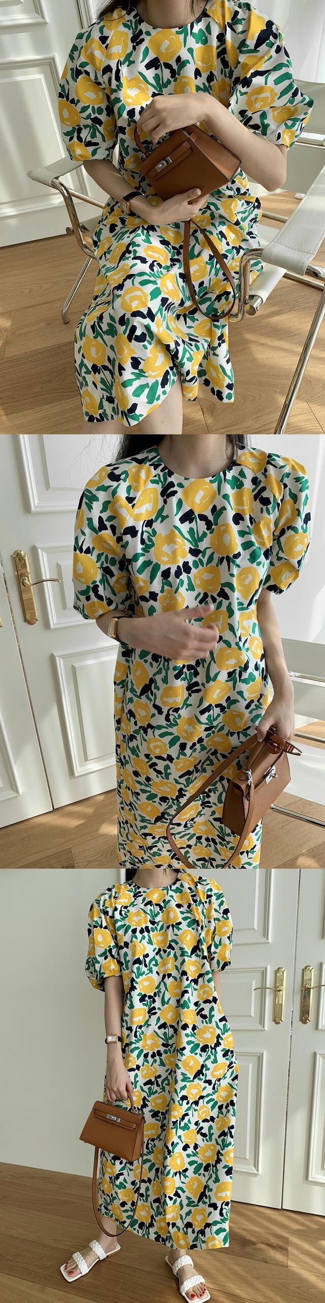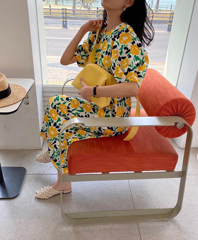 サマースタンダードスタイルルーズ薄手スリーブドレス レディース レトロ 夏物 フラワーデザイン 韓国婦人55950660928