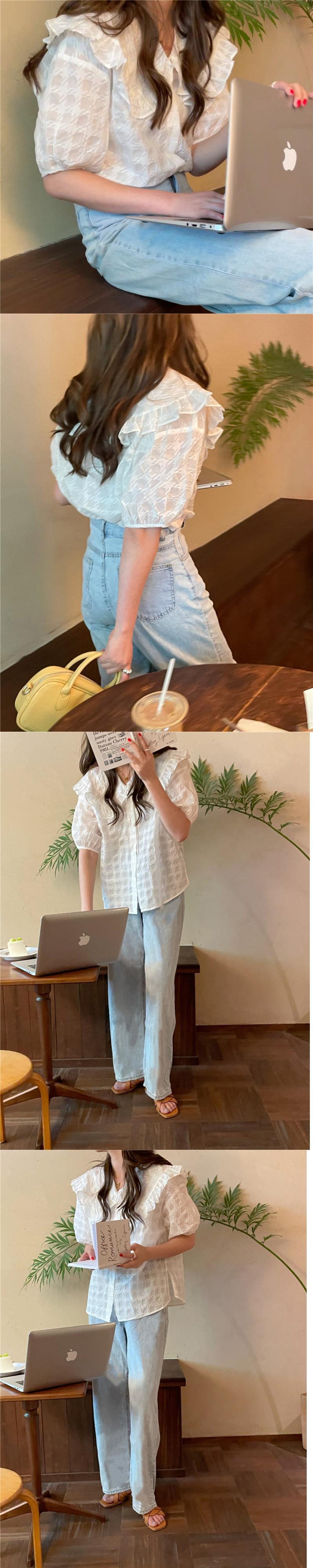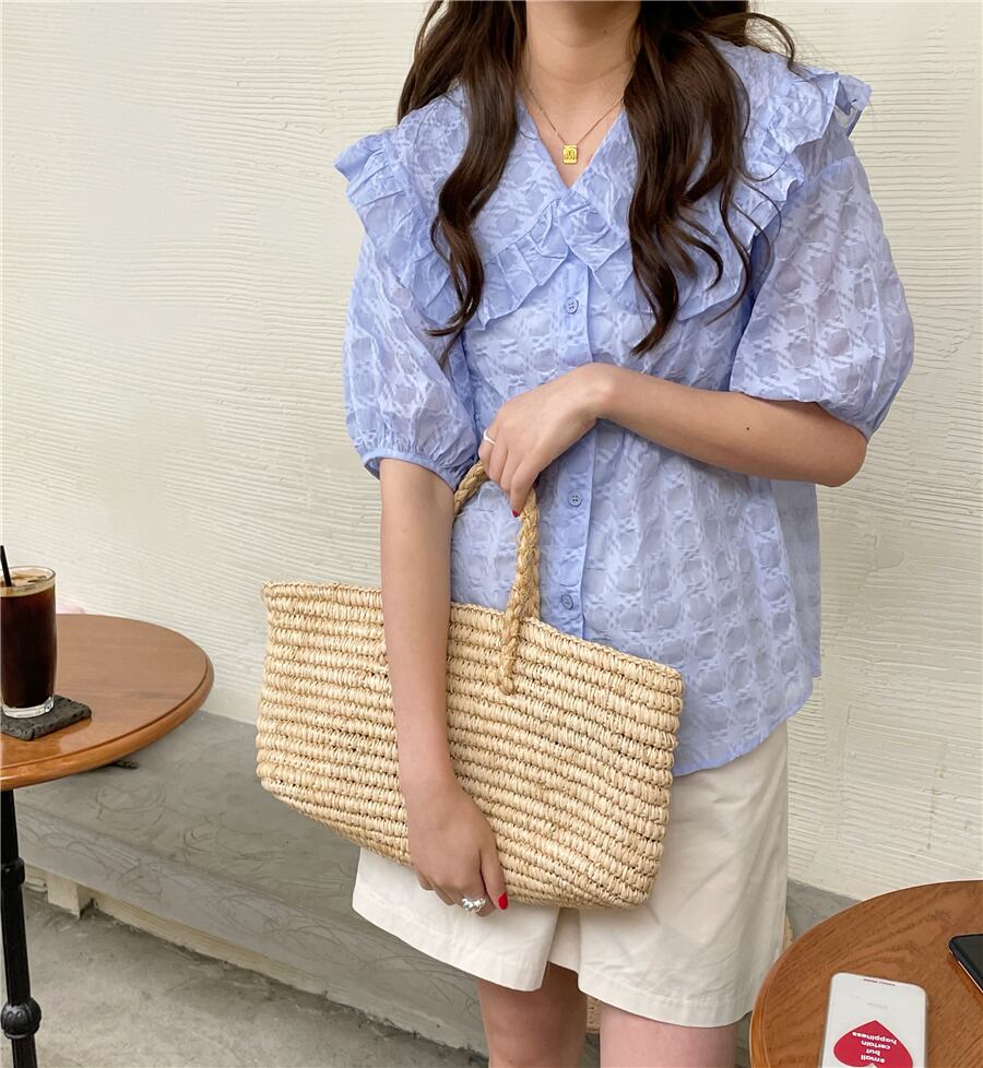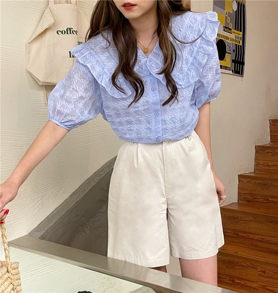 サマーダークホワイトルーズシャツ トップス 夏物 韓国婦人46494089291