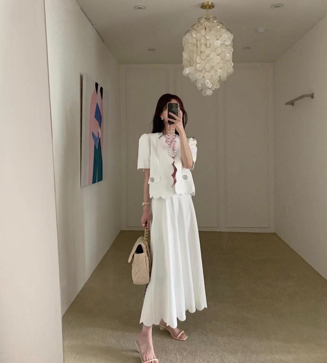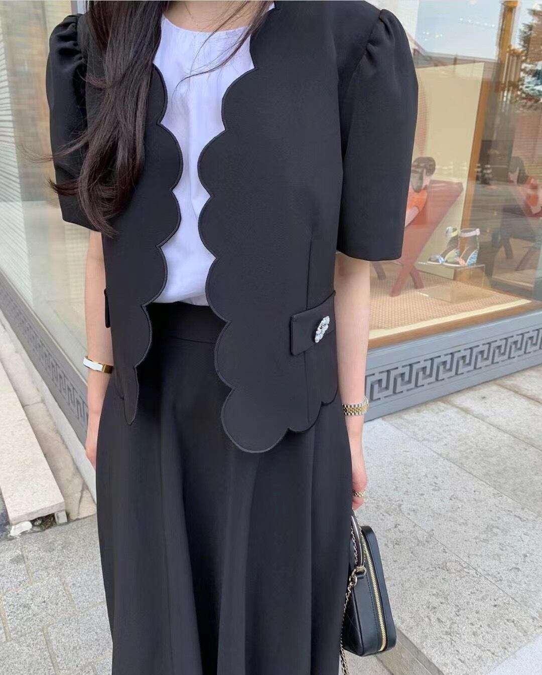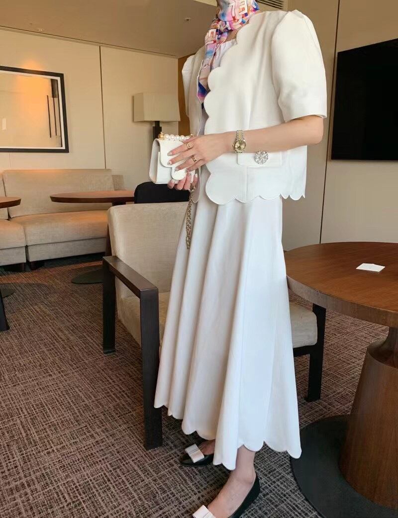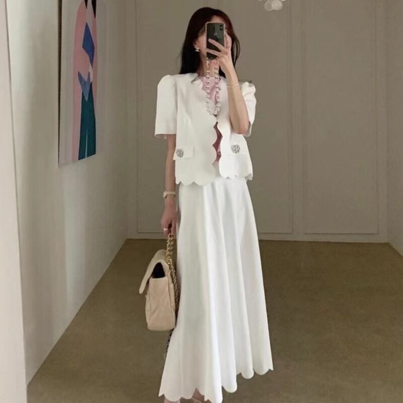 サマースタンダードレースラインストーンジャケット ロングハイウェストウェストスカート レトロ 夏物 韓国婦人73645801386