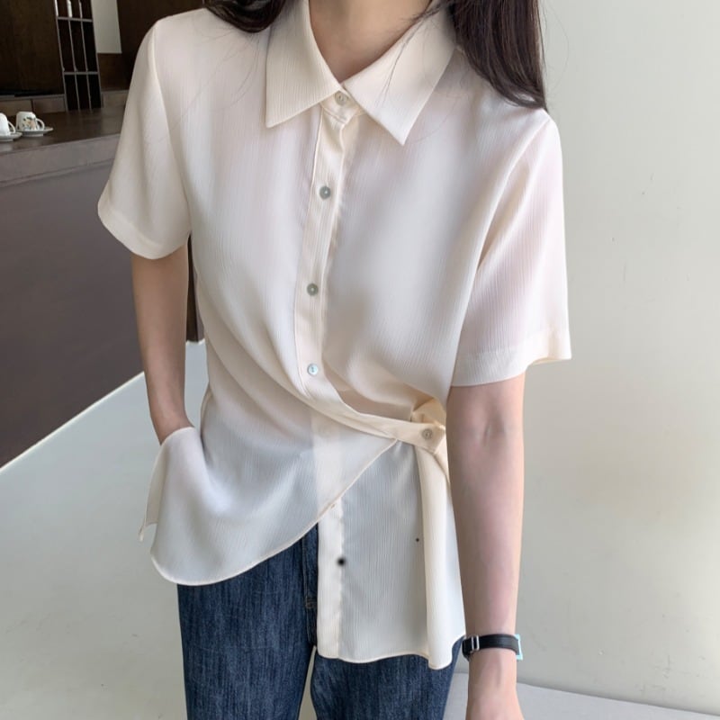 サマーカラーセット ウェストシフォンシャツ レディース 夏物 韓国婦人33455224460
