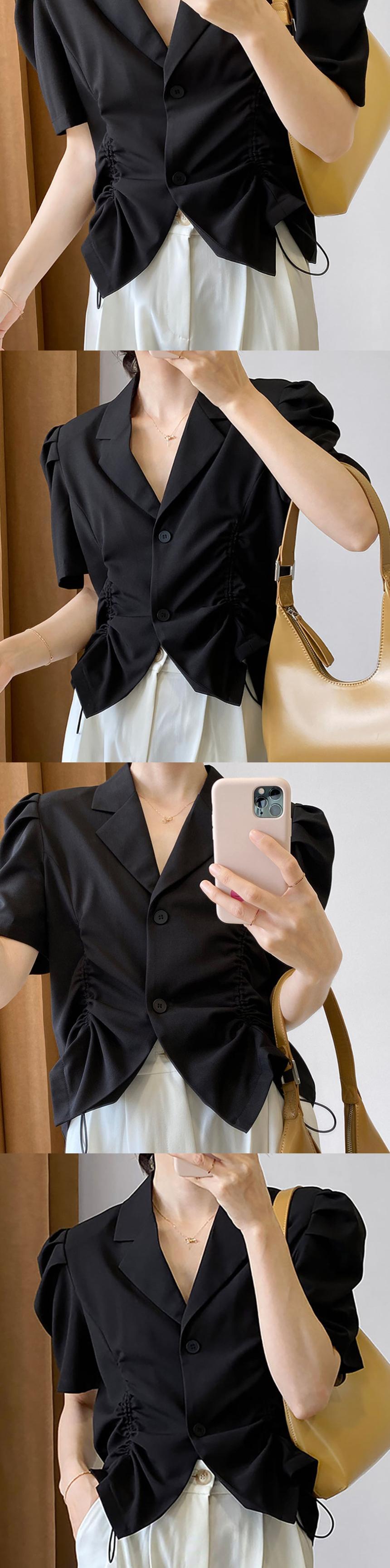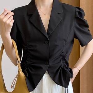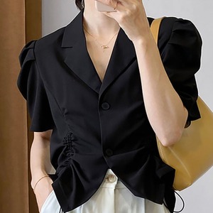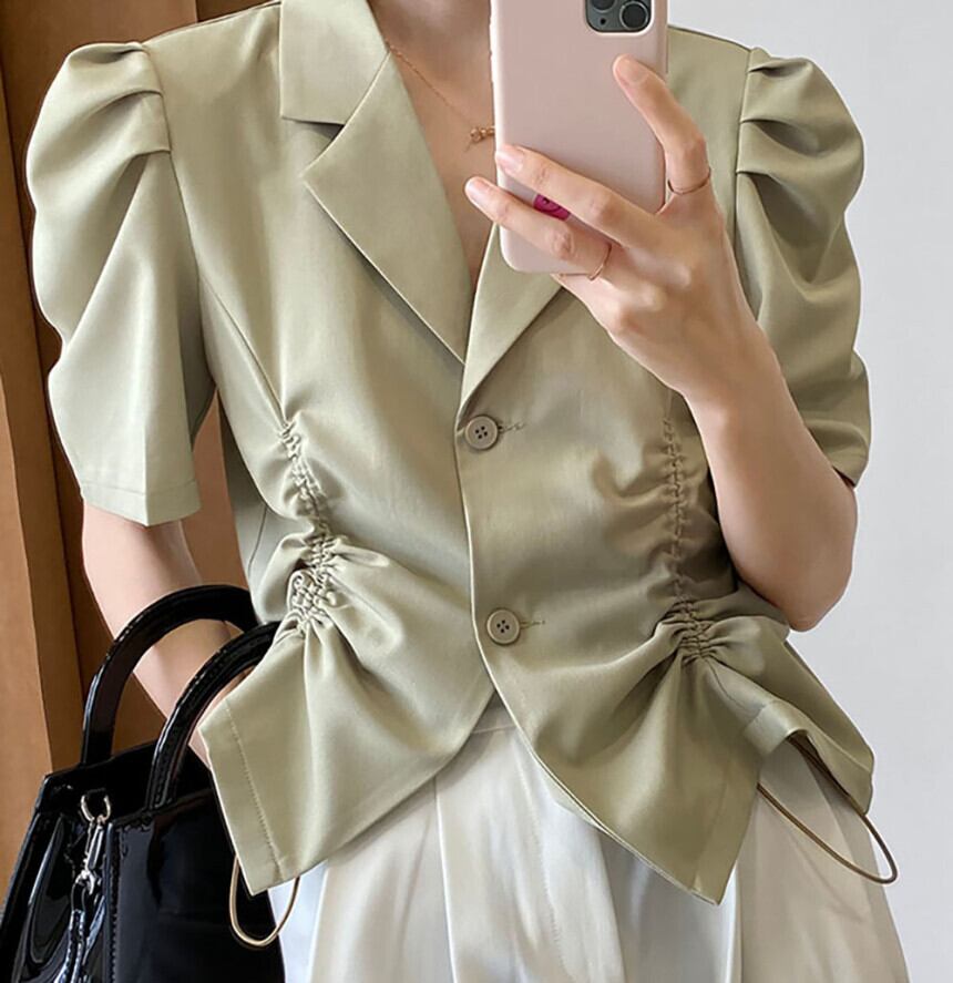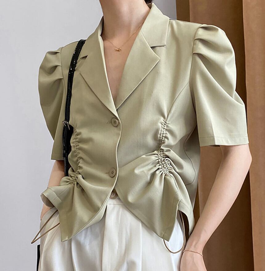サマーカラーギャザースリーブシャツ トップス レディース 夏物 韓国婦人43794949834