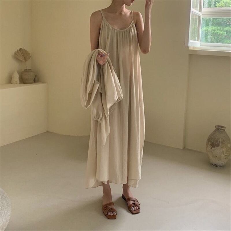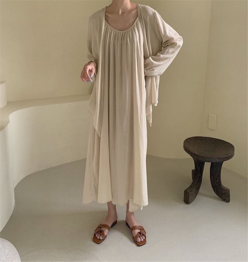 サマースタンダードロングドレス コート レディース レトロ 夏物 韓国婦人92887998422
