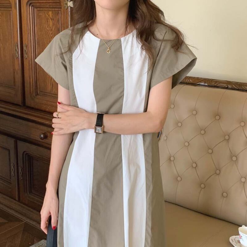 サマースタンダードAラインドレス レトロ 夏物 ステッチ 韓国婦人77056171108