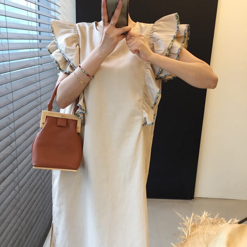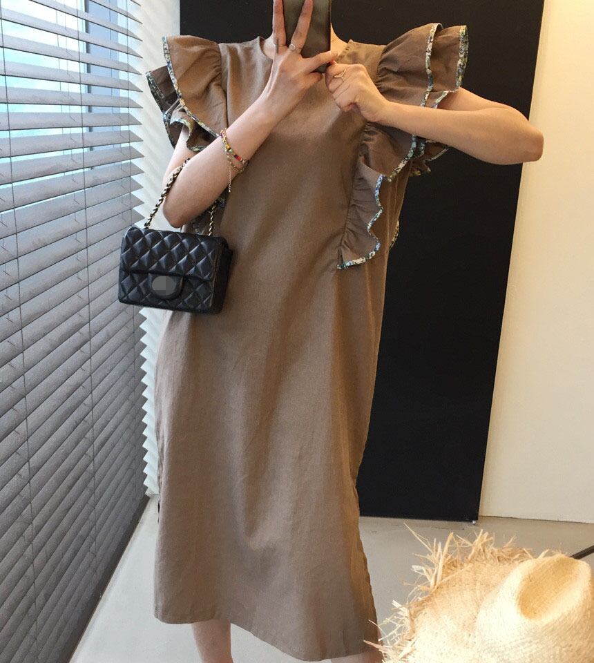 サマーラウンドネックカラーサイドスリットドレス レディース 夏物 Oネック 韓国婦人43080385952