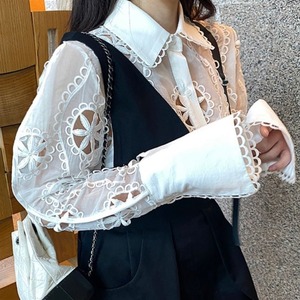 サマーレーススタイルスタンダードスリーブシャツ レディース ランタンスリーブ レトロ 夏物 韓国婦人28621461852