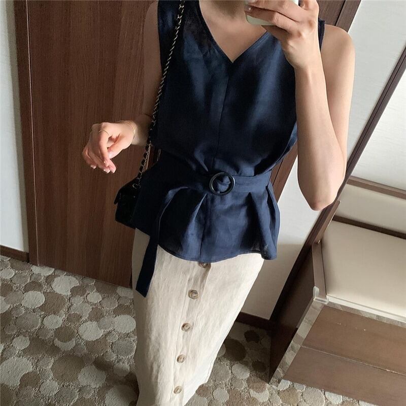 サマースタイルスタンダード薄手ウェストシャツ スカート レトロ レース 夏物 レースアップ 韓国婦人36977865247