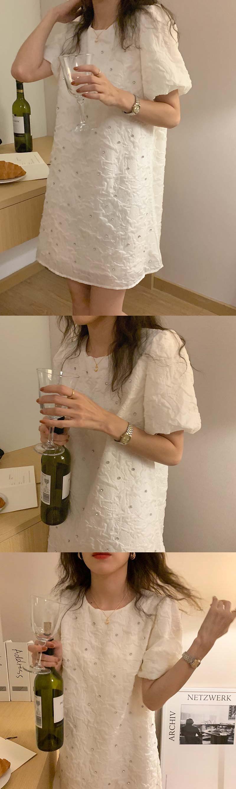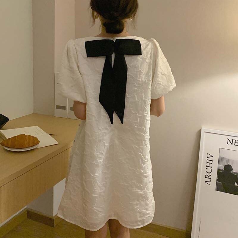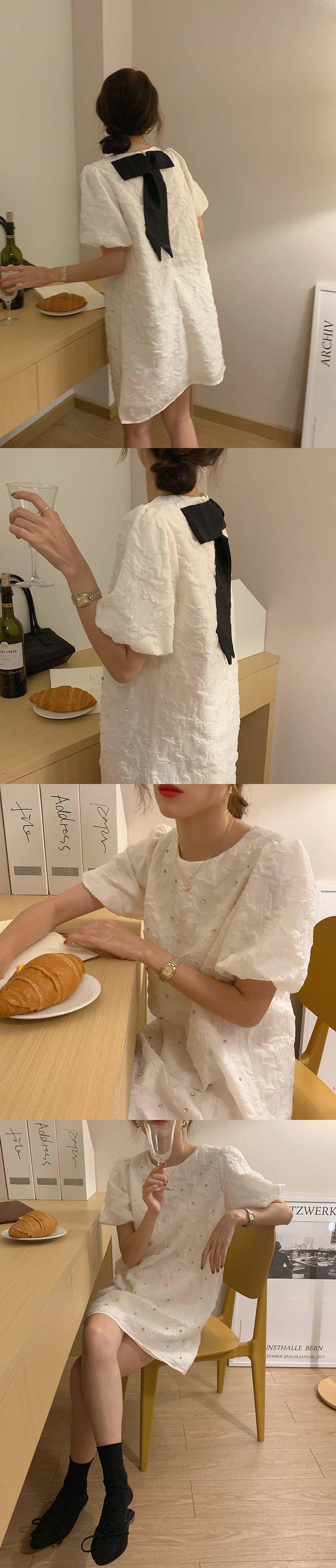 サマーラウンドネックスリーブラインストーンドレス リボン 夏物 Oネック 韓国婦人7670106731