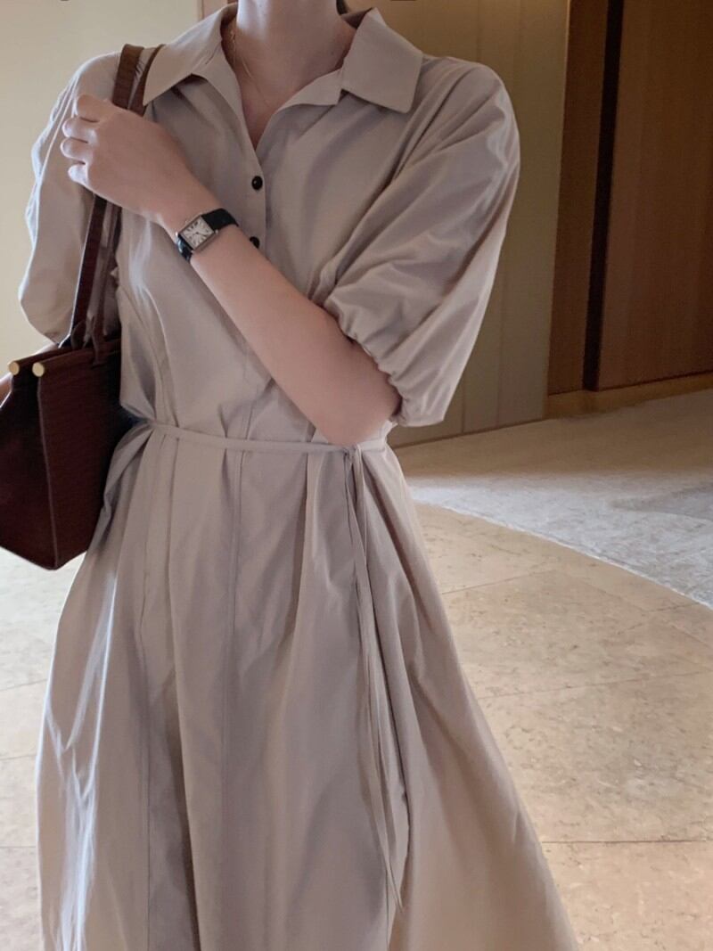 サマーウェストベルト スリーブロングシャツ ドレス 夏物 ハーネス 韓国婦人86430757842