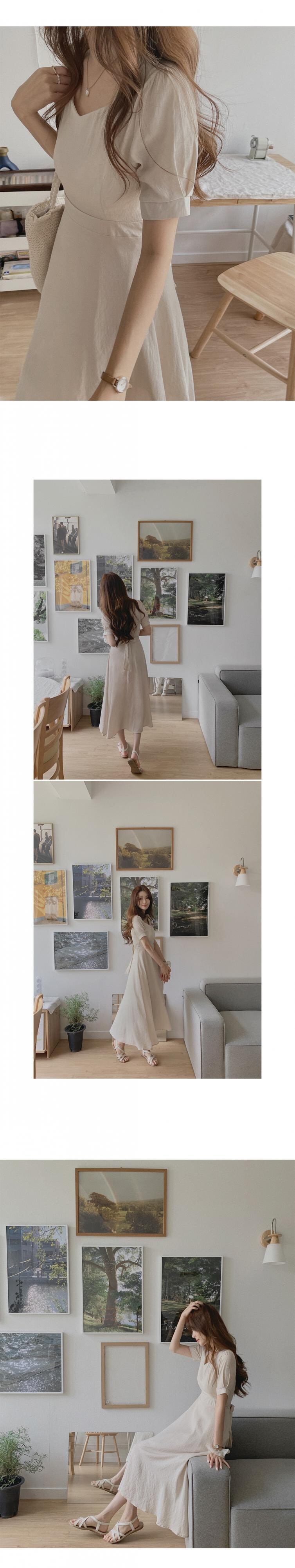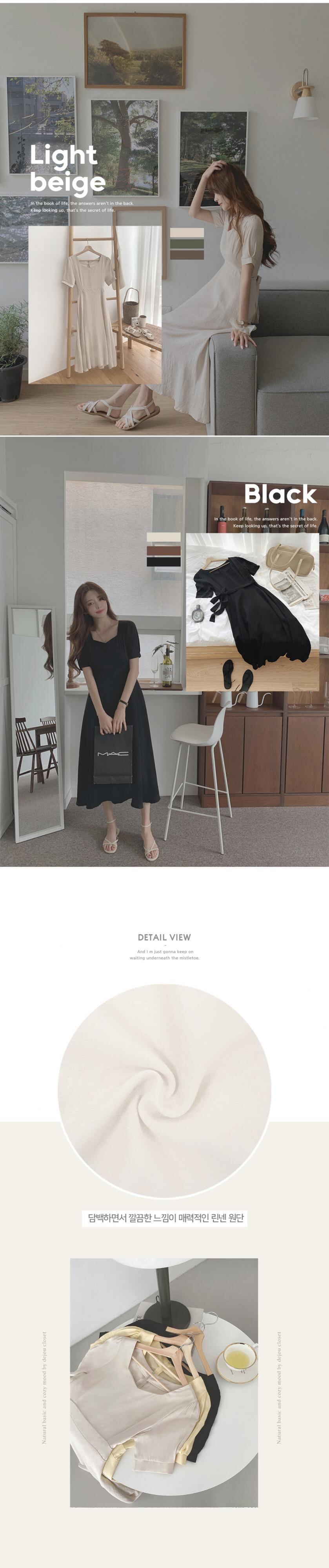 サマースタンダードカラースリーブウェストソリッド Aラインドレス ロングスカート レトロ 夏物 ソリッドカラー スクウェア 韓国婦人69134967042