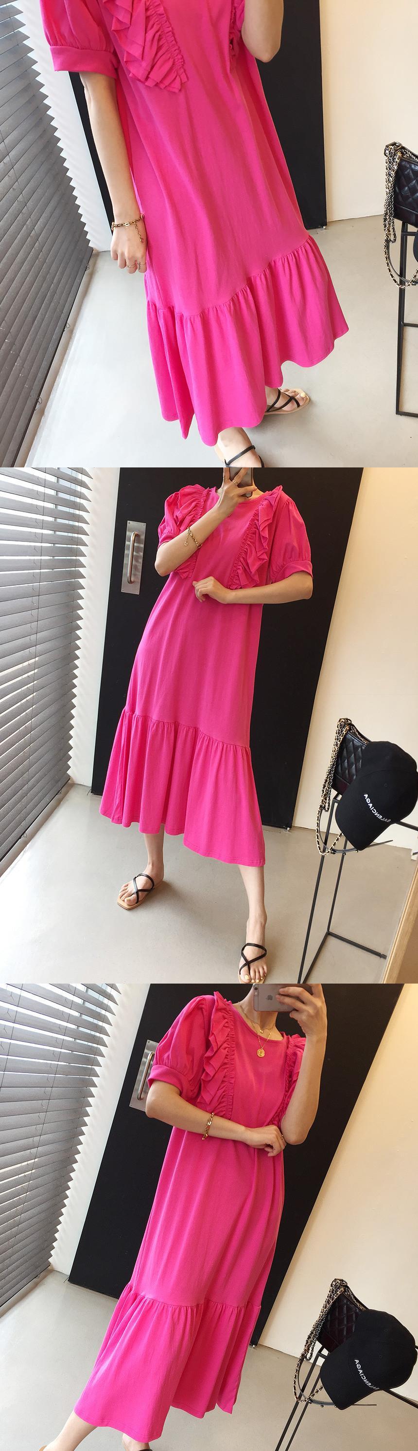 スタイルラウンドネックカラースリーブドレス サマーロングスカート エレガント 夏物 Oネック 韓国婦人16026893266