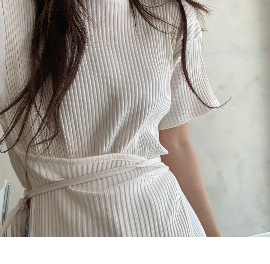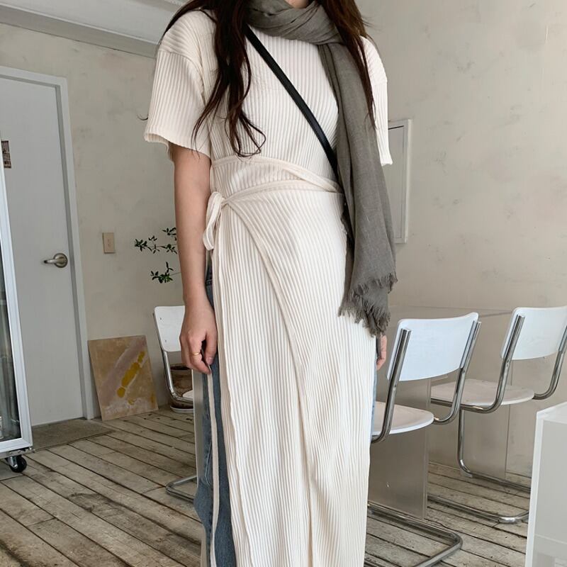 サイドスリットバンドTシャツ ドレス サマーロングスカート ストリート 夏物 韓国婦人92770136813