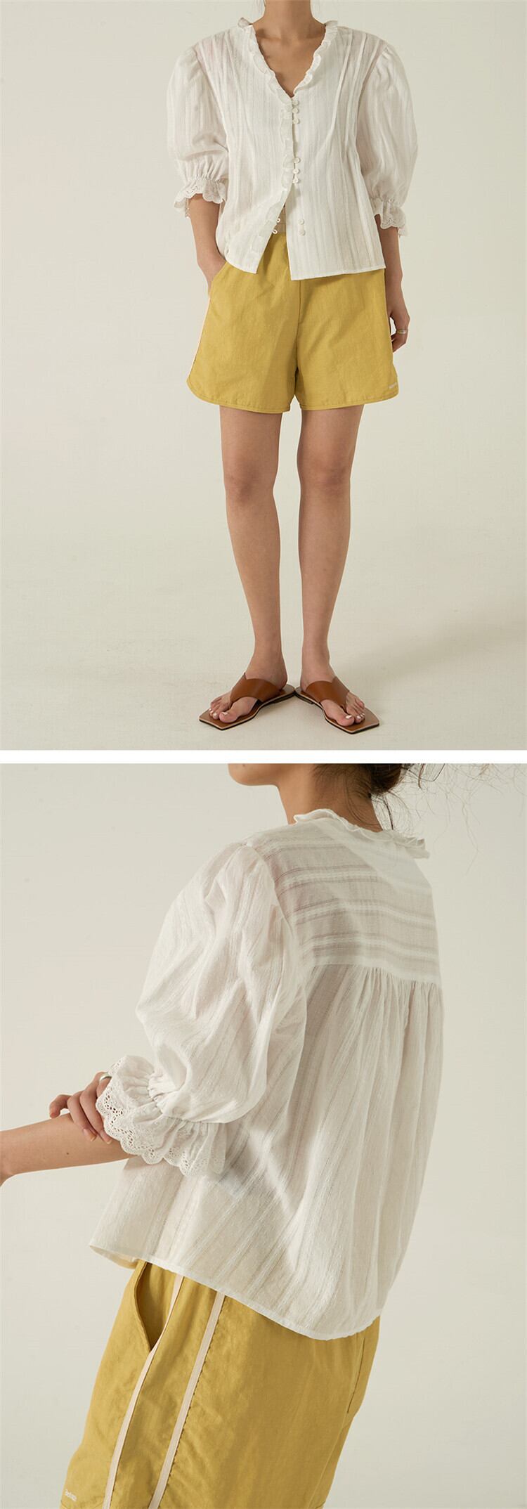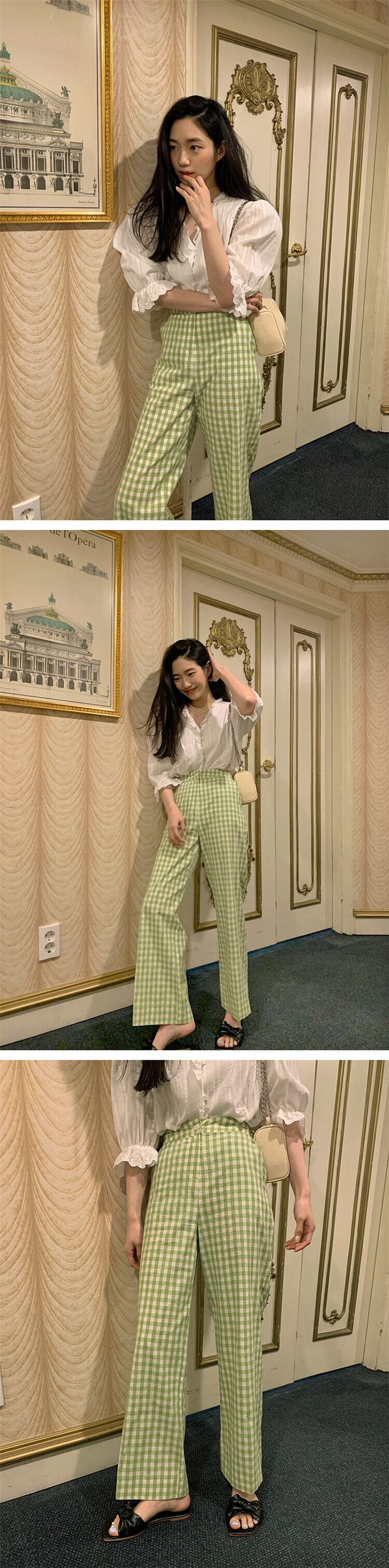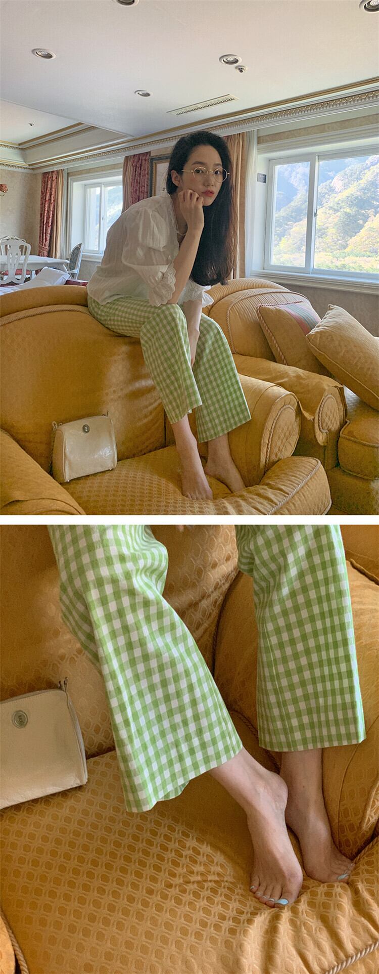 サマーレースカラースリーブシャツ グリーン格子柄パンツ レディース 夏物 韓国婦人21236902479