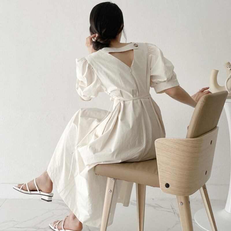 サマーホルターバックスリーブルーズレースロングドレス レディース 夏物 韓国婦人33551568154
