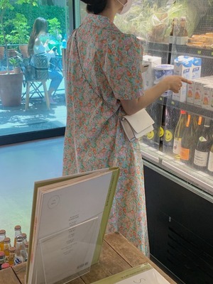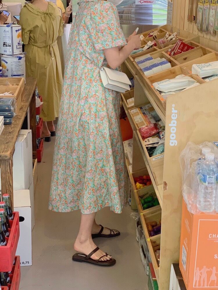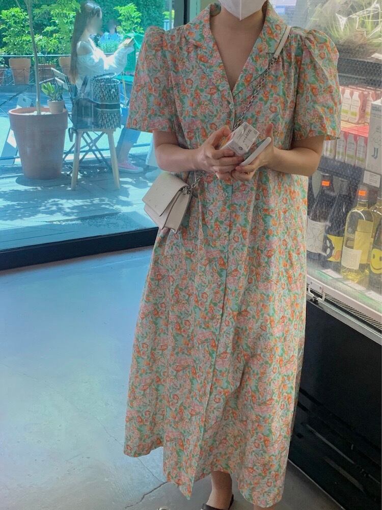 サマースタンダードフローラルスリーブカラーロングドレス レトロ 夏物 花柄 韓国婦人56027379795