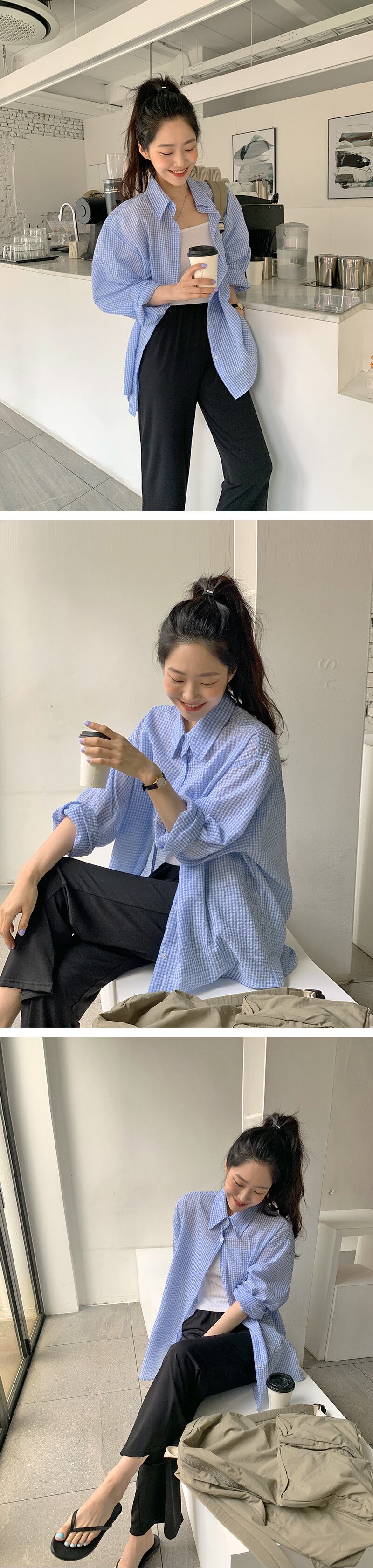 サマーカジュアルルーズ格子柄シャツ レディース 夏物 韓国婦人79680396631