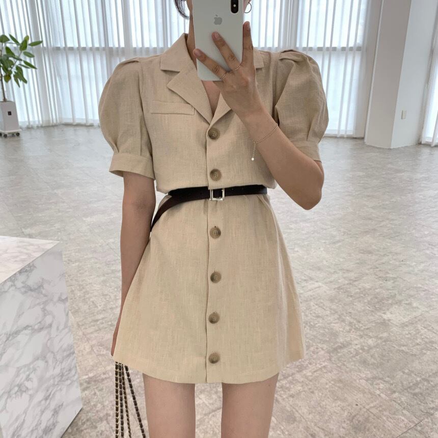 サマーカラースリーブウェストドレス レディース コットン 夏物 韓国婦人95273015414