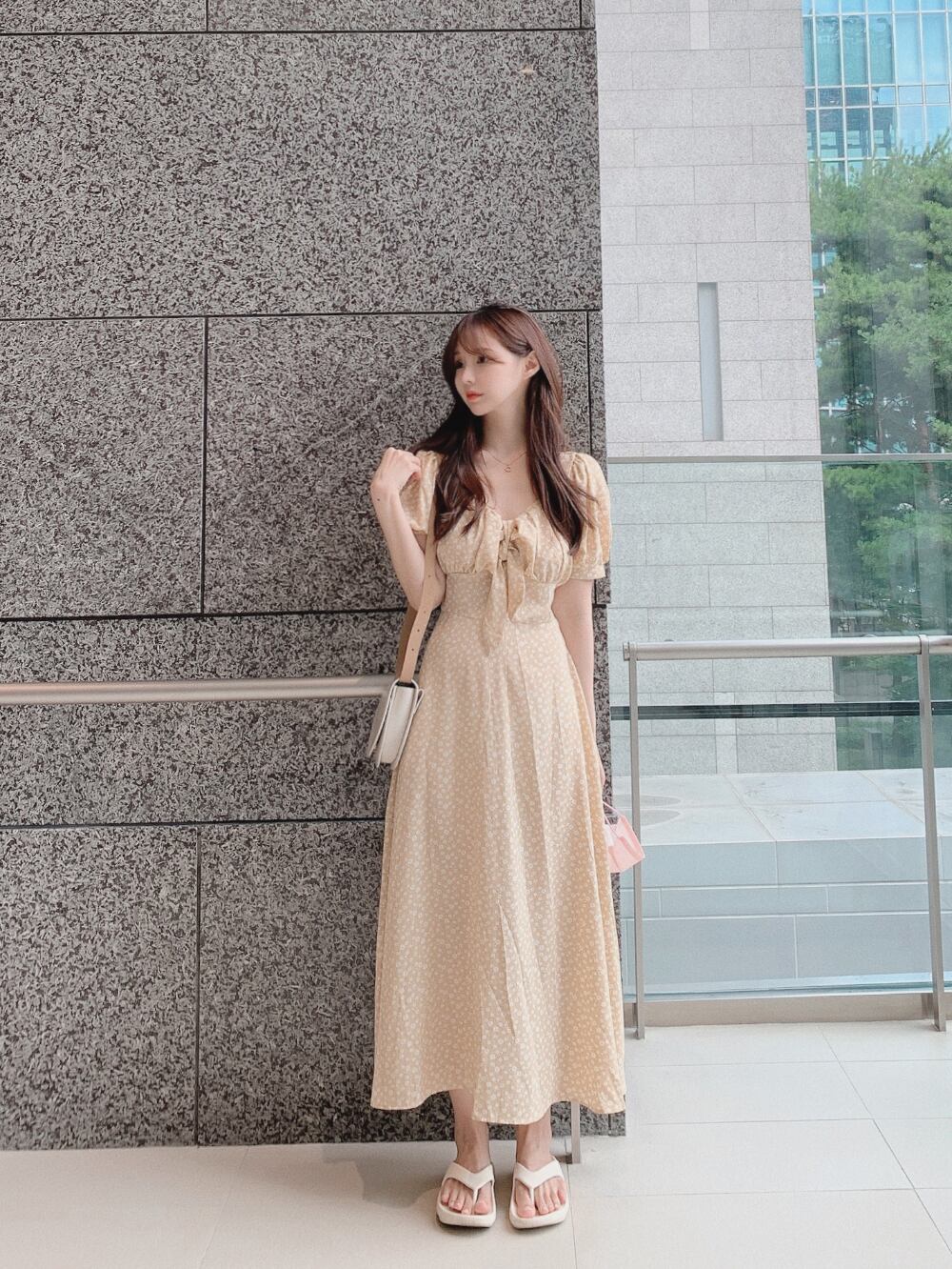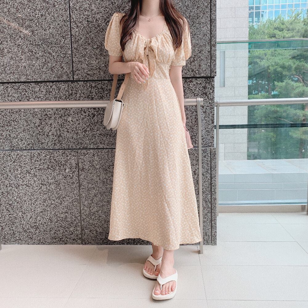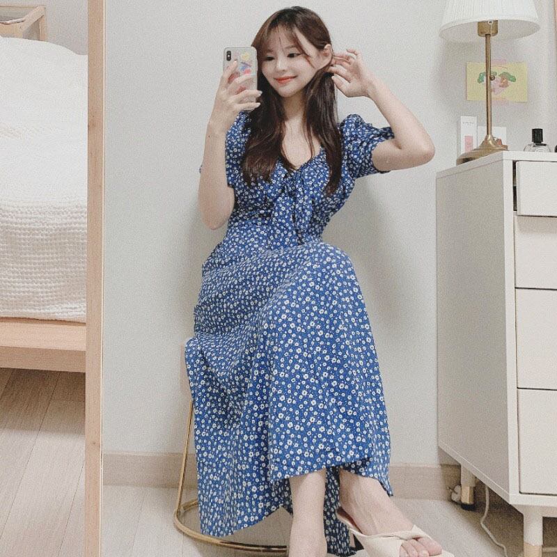 サマースタンダードフローラルVネックシフォンドレス ロングスカート レトロ 夏物 花柄 韓国婦人88528165128