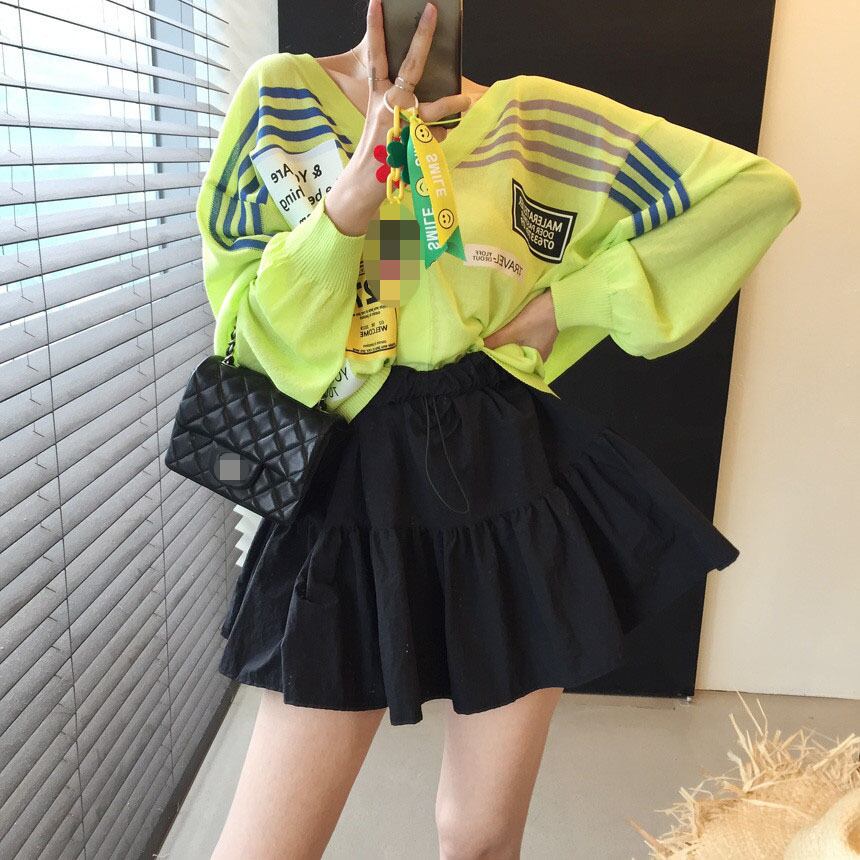 色:白いカーディガン,グレーのカーディガン,グリーンカーディガン,黒スカート