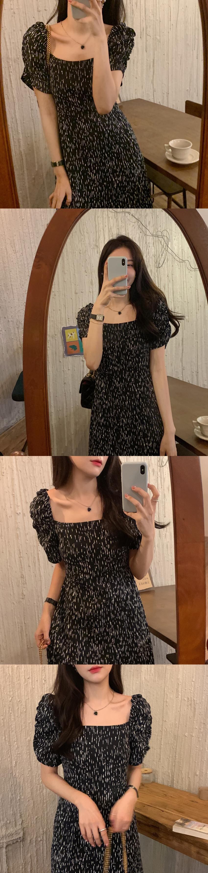 スリーブプリント柄ドレス レディース スクウェア 韓国婦人65121644411