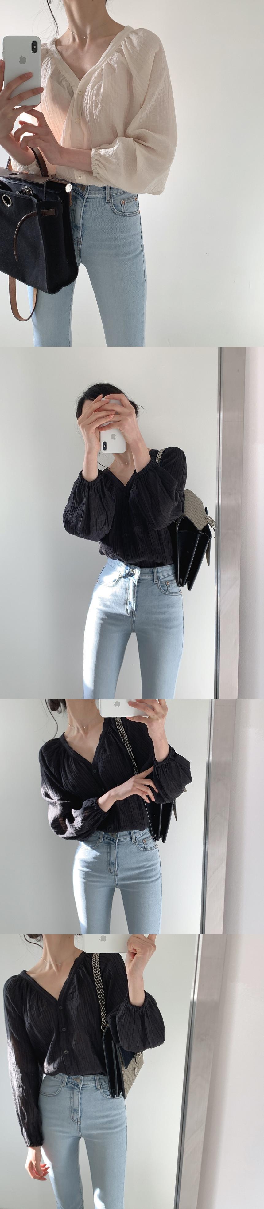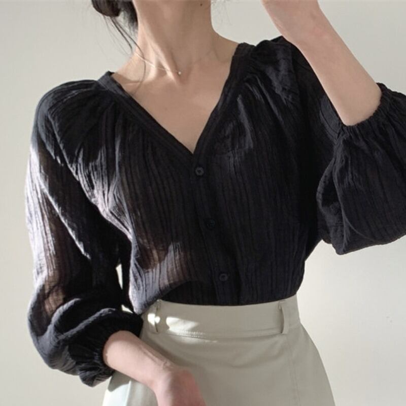 サマースタイルスタンダードVネックスリーブブラウス 薄手ルーズシャツ レディース コットン レトロ 夏物 韓国婦人58711578209