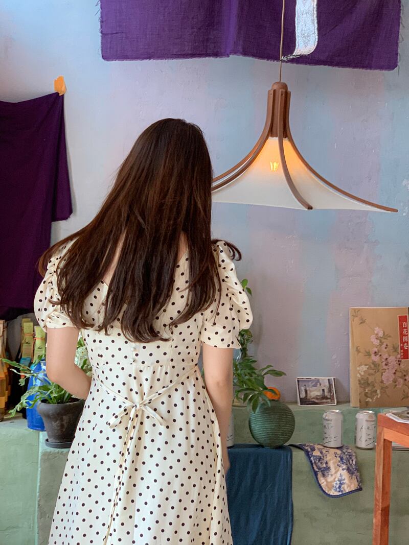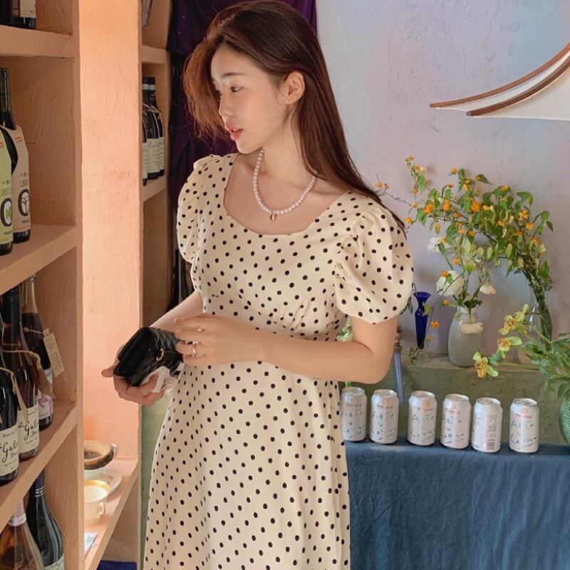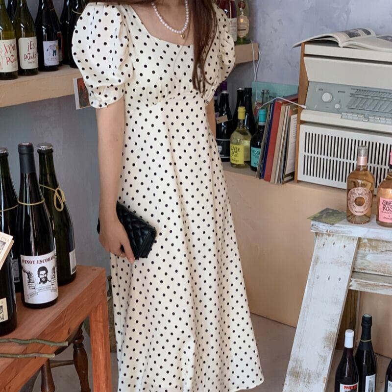 サマースタイルウェストスリーブドレス ロングスカート レース 大人ガーリー スウィート キュート カジュアル 夏物 スクウェア 韓国婦人68346624228