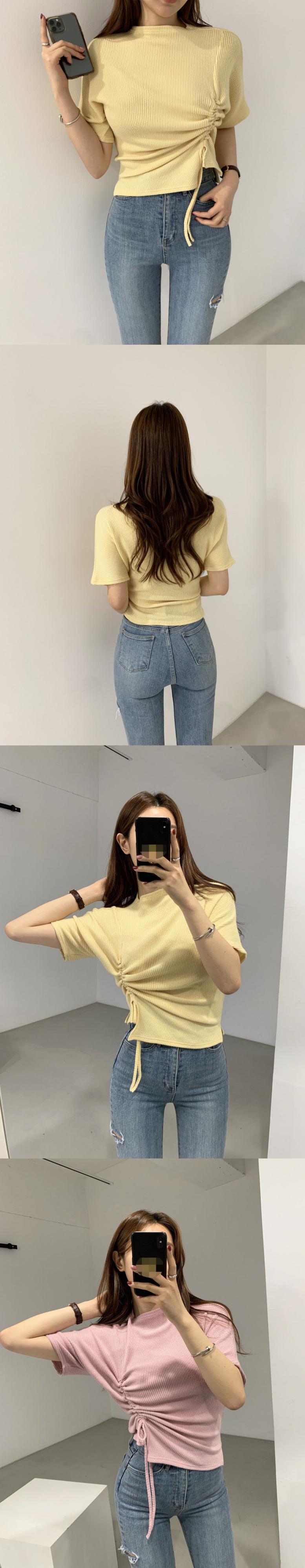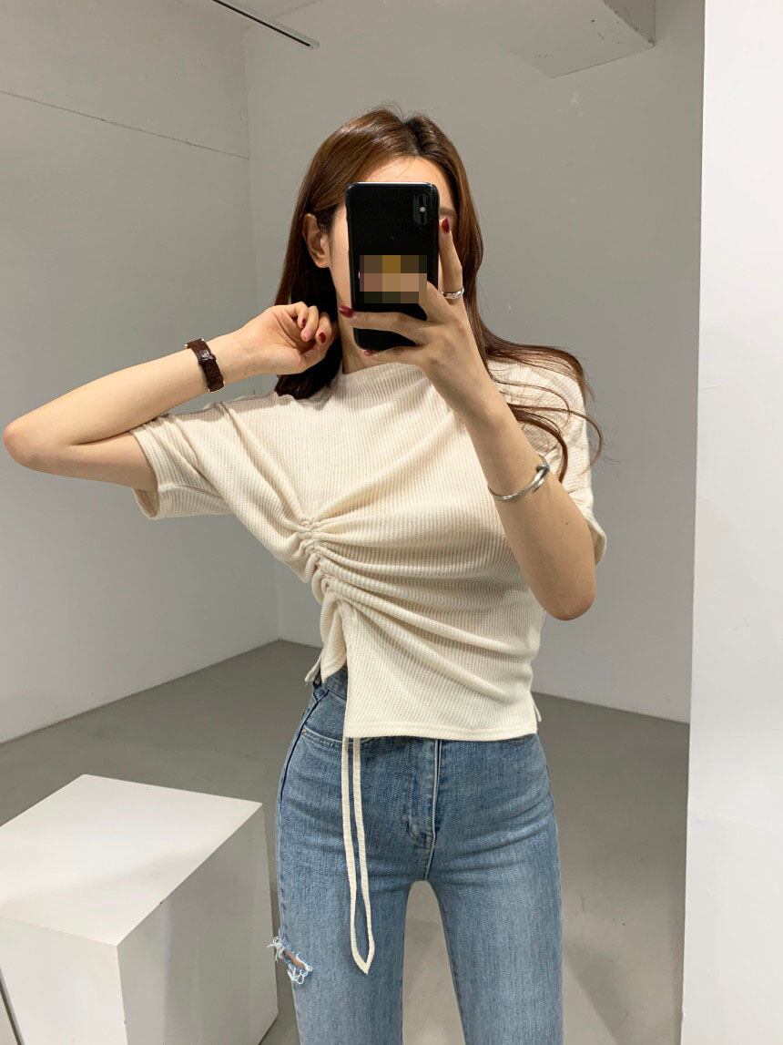 サマープリーツギャザー薄手スリムニットセーター トップス レディース 夏物 韓国婦人32950459927