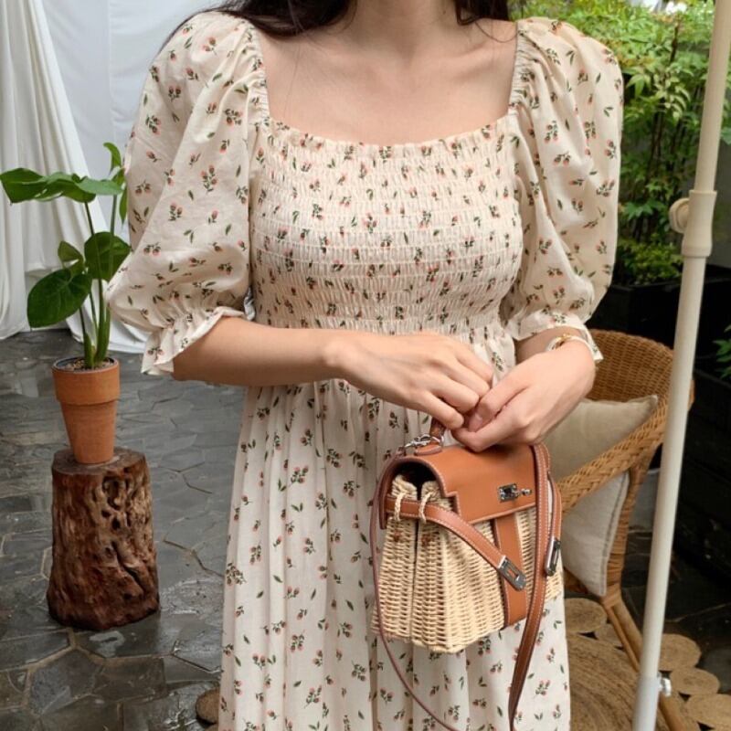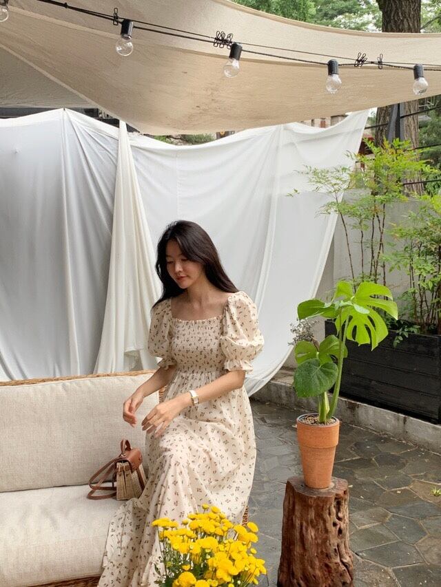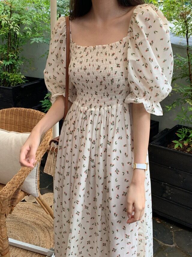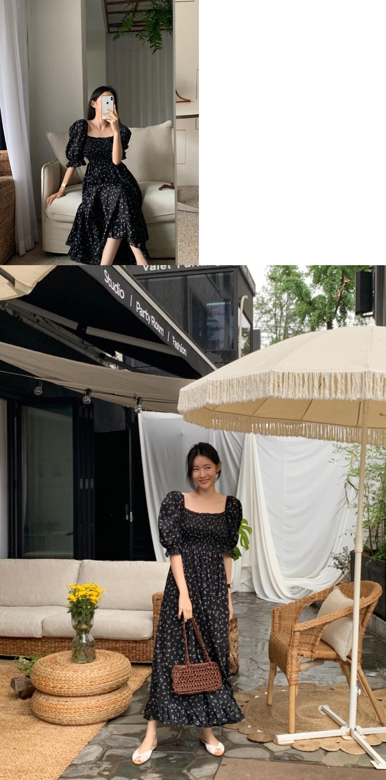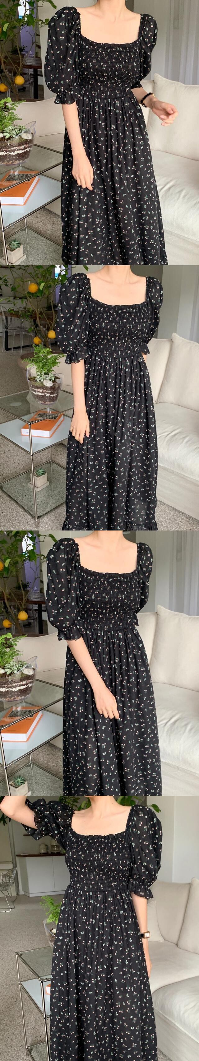 サマーカラースリーブロングフローラルドレス 夏物 花柄 スクウェア 韓国婦人41302360652