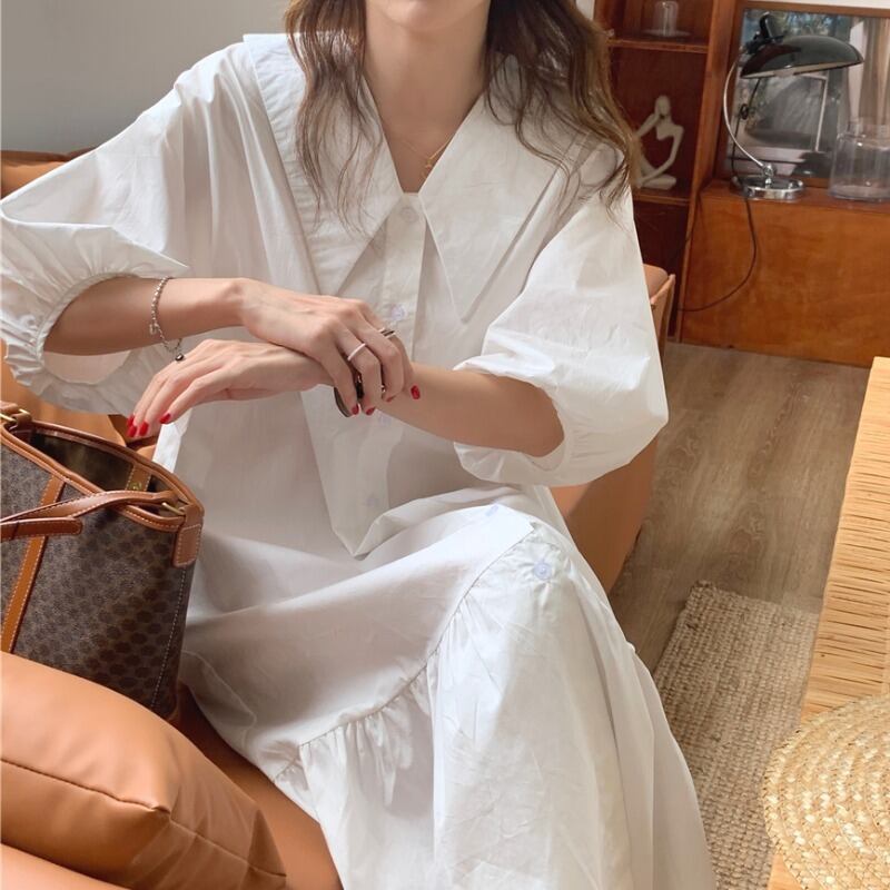 サマースリーブルーズシャツ ドレス レディース 夏物 韓国婦人52627613977