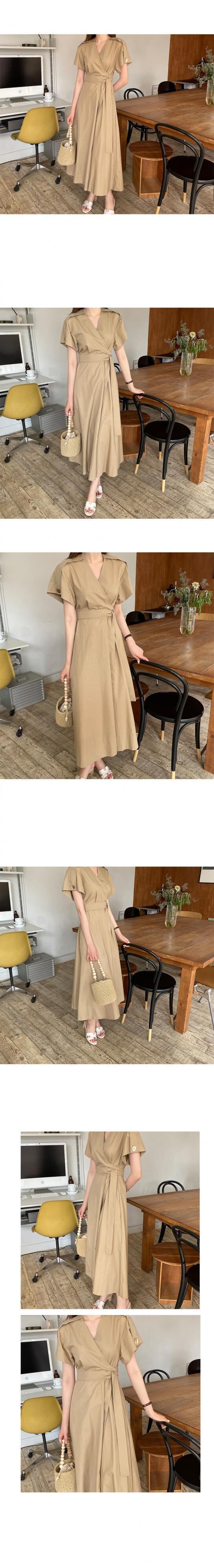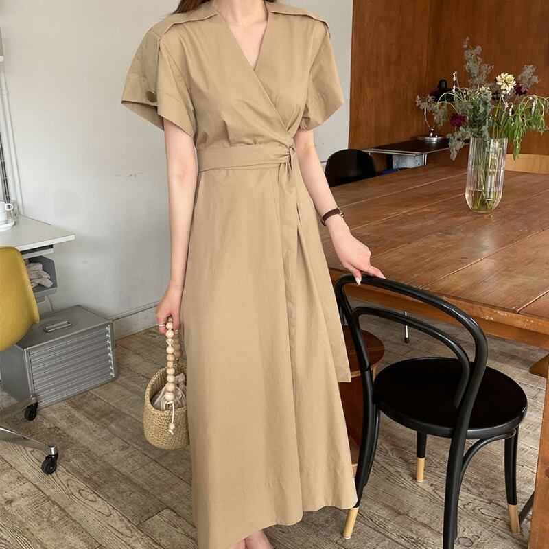 サマースタンダードVネックロングドレス レディース レトロ 夏物 韓国婦人11338737156