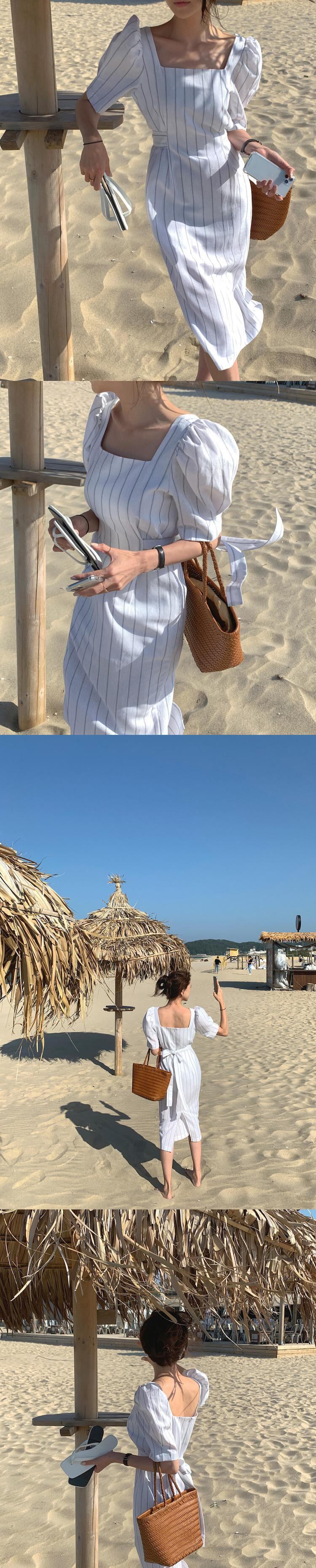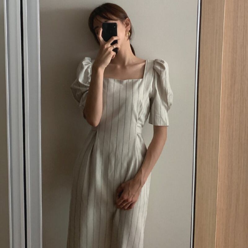 サマースタイルウェストバックストライプドレス レディース 夏物 スクウェア 韓国婦人21792505341