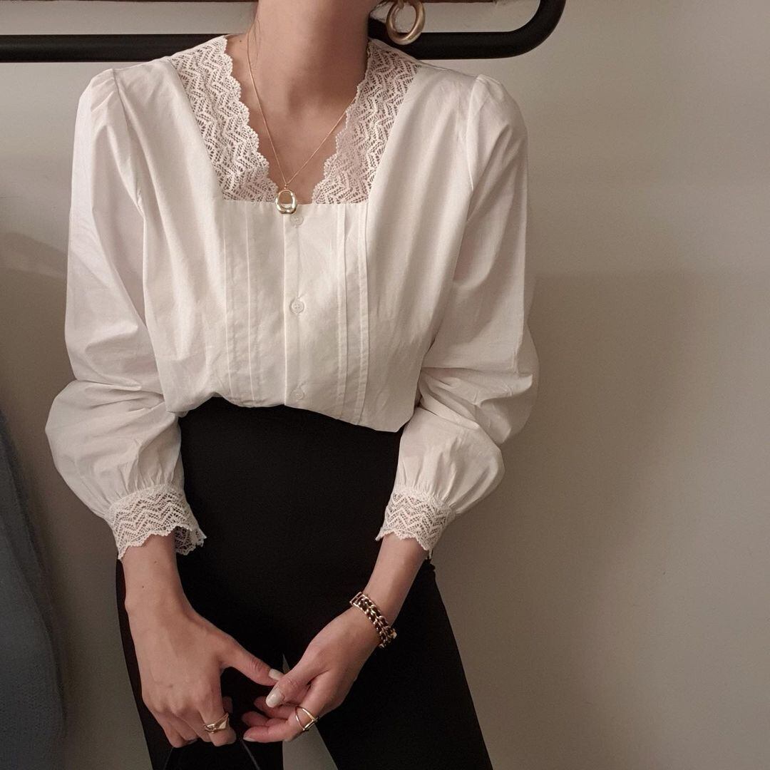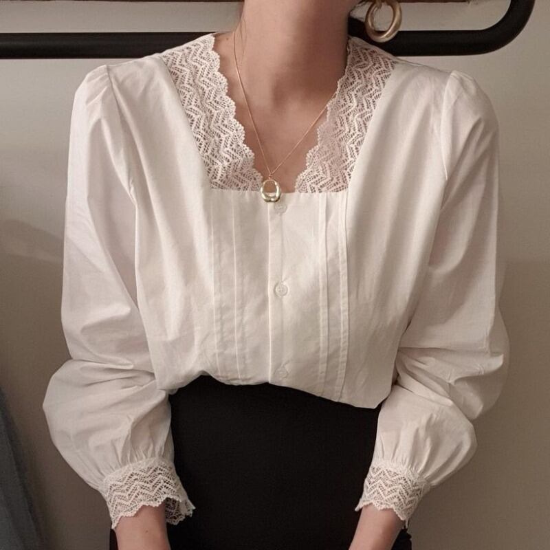 シフォンシャツ サマースタイルVネックレーストップス レディース ロング 夏物 ステッチ 韓国婦人10670129277
