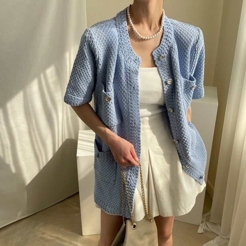 ニットカーディガンサマーラウンドネックルーズジャケット 夏物 Oネック 韓国婦人77193203673