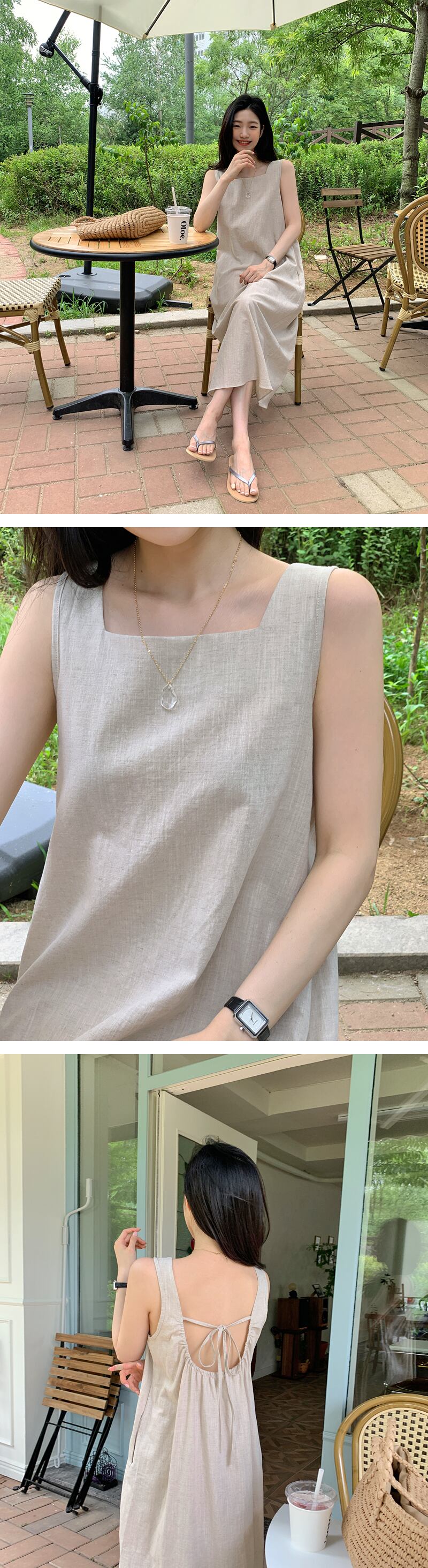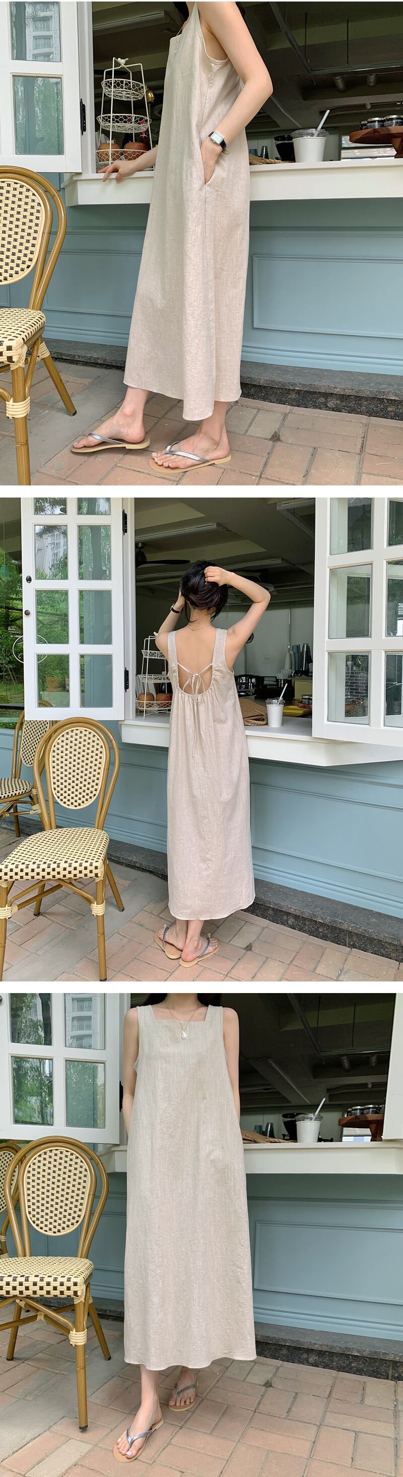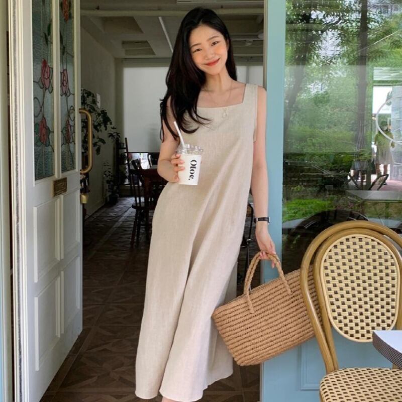 サマーミニマリストスタイルカラーバックレースロングドレス コットン 夏物 スクウェア 韓国婦人77601071713