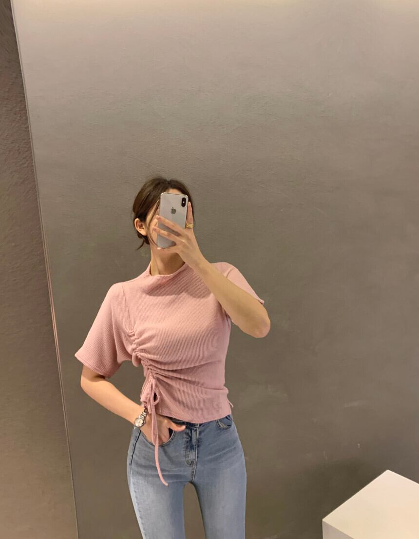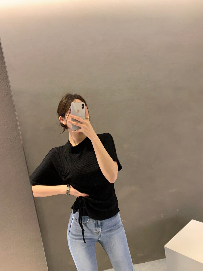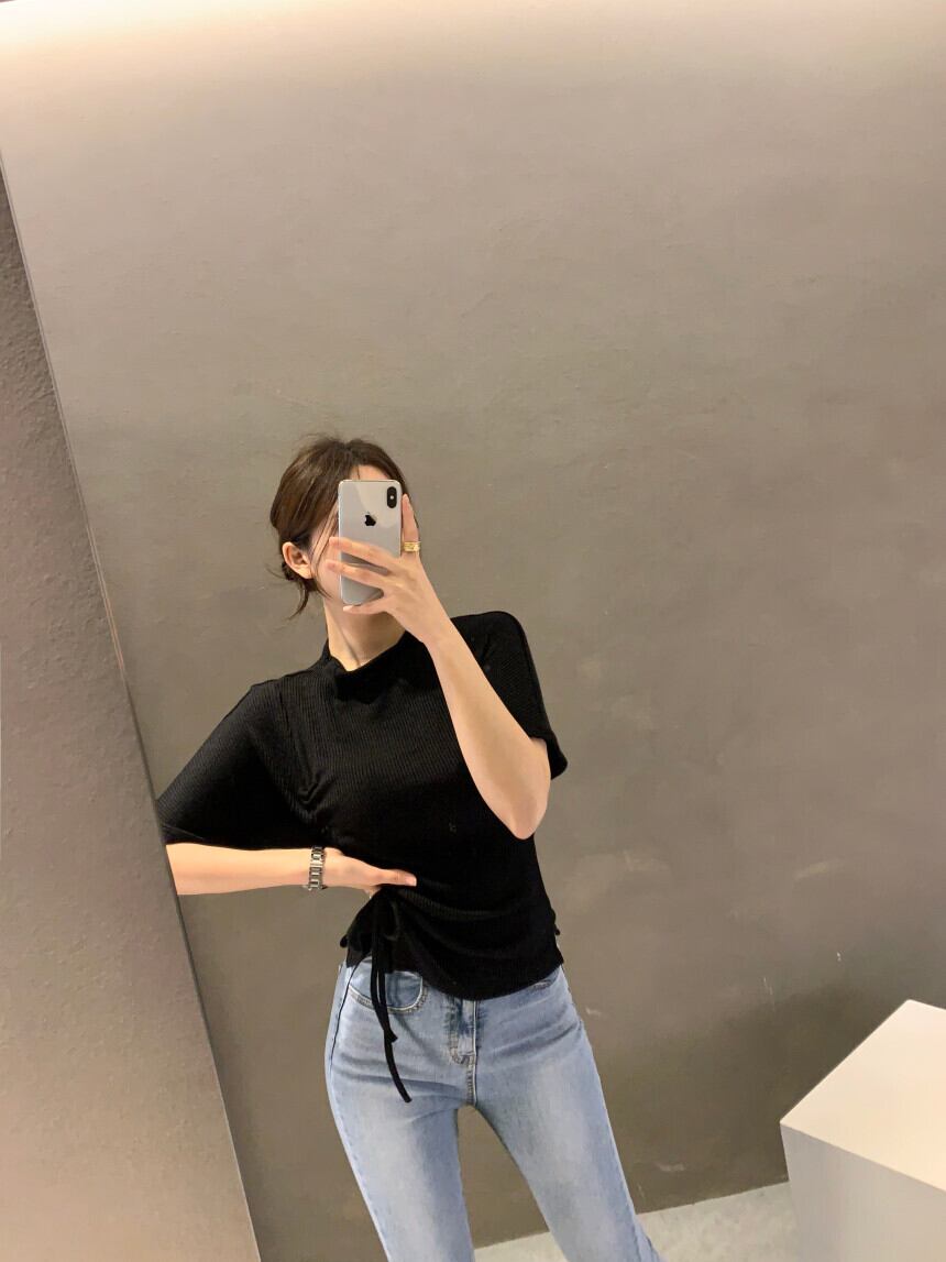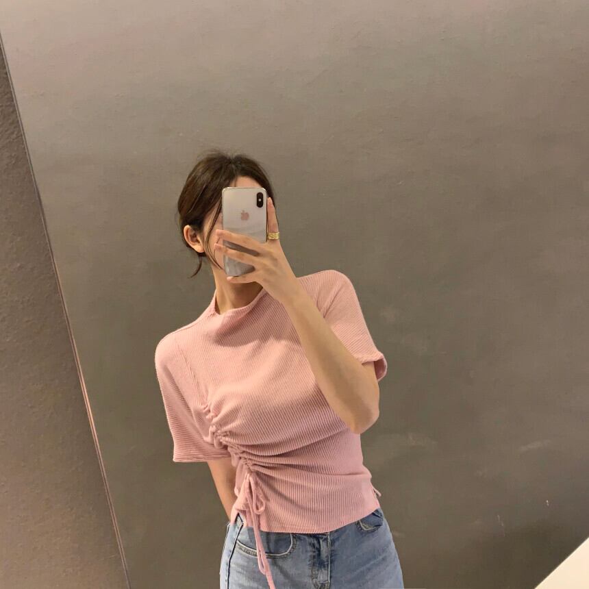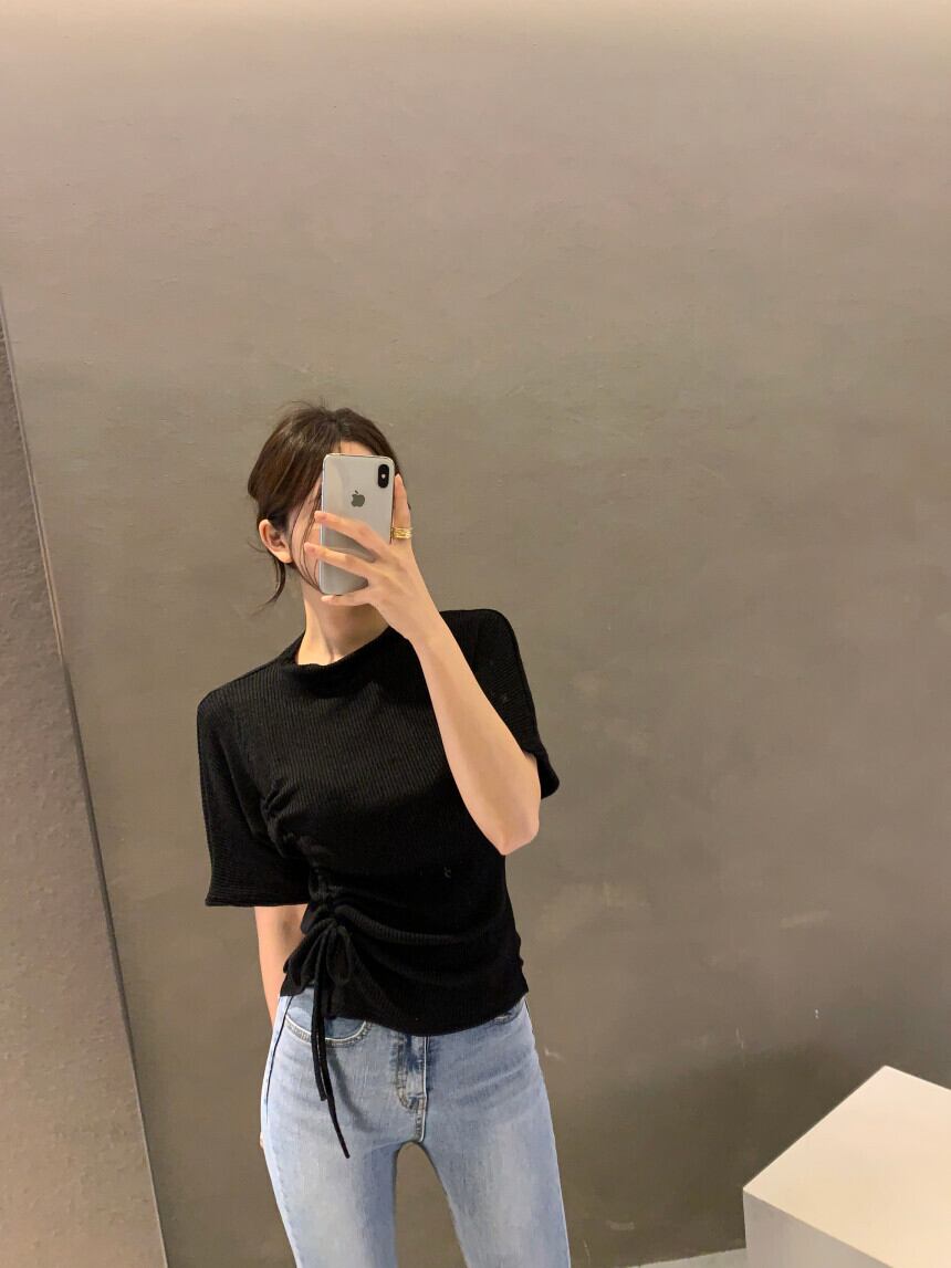 スタンダードギャザープリーツストライプセーター スリム薄手トップス サマー レトロ 夏物 韓国婦人13365480099