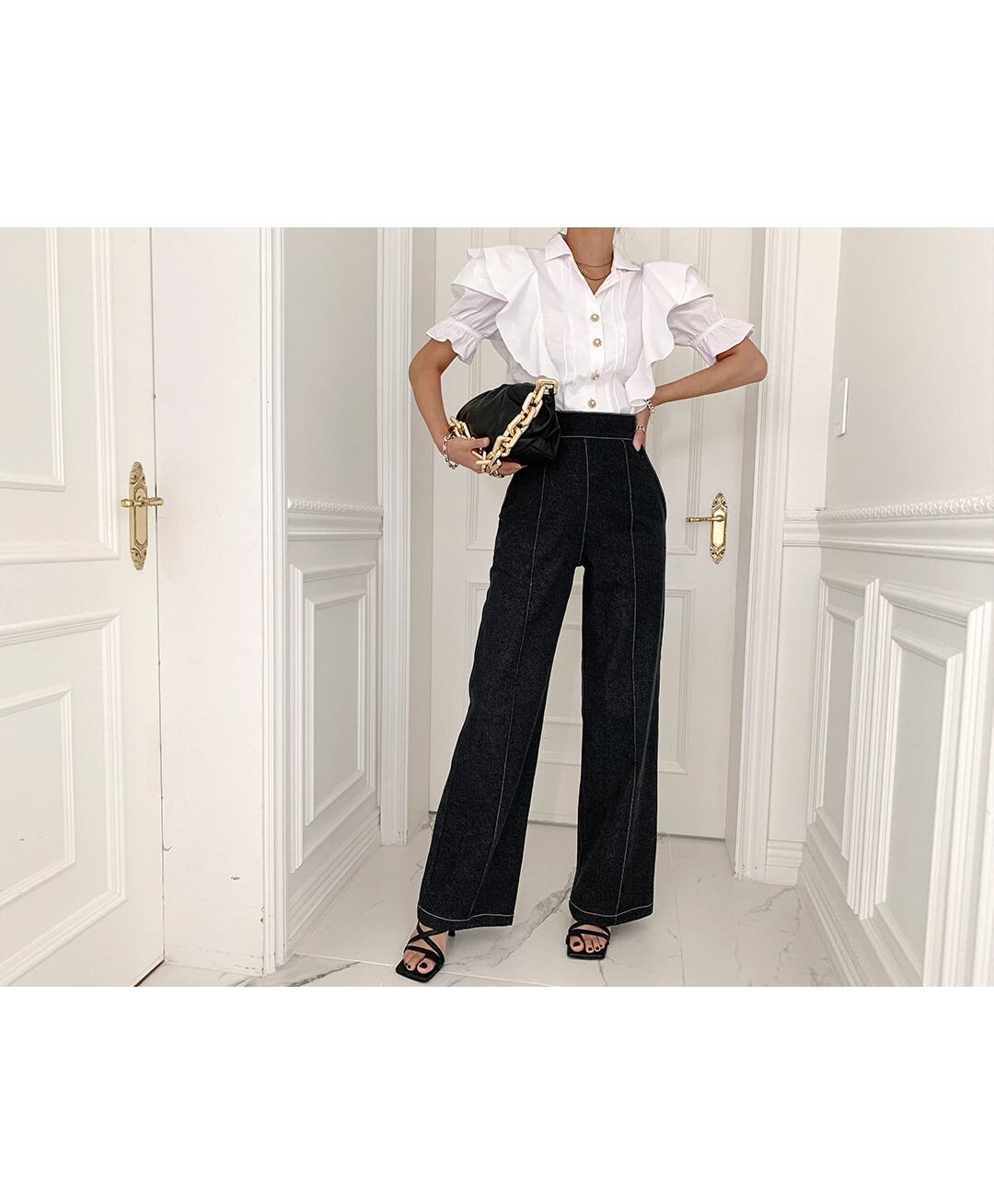 スリーブシャツ パールブラウス サマー 夏物 真珠 韓国婦人18050404724