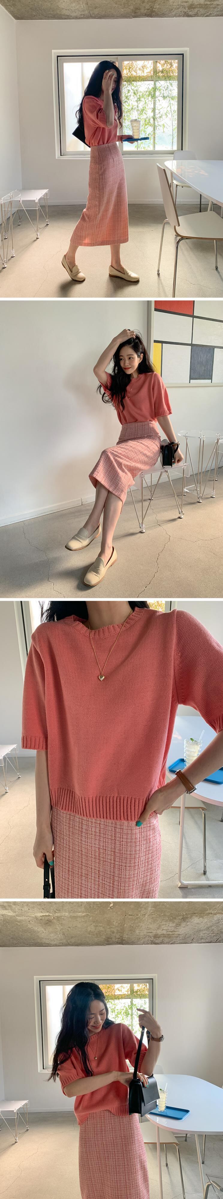 サマーラウンドネックセーター ツィードスカート 夏物 Oネック 韓国婦人99802167605