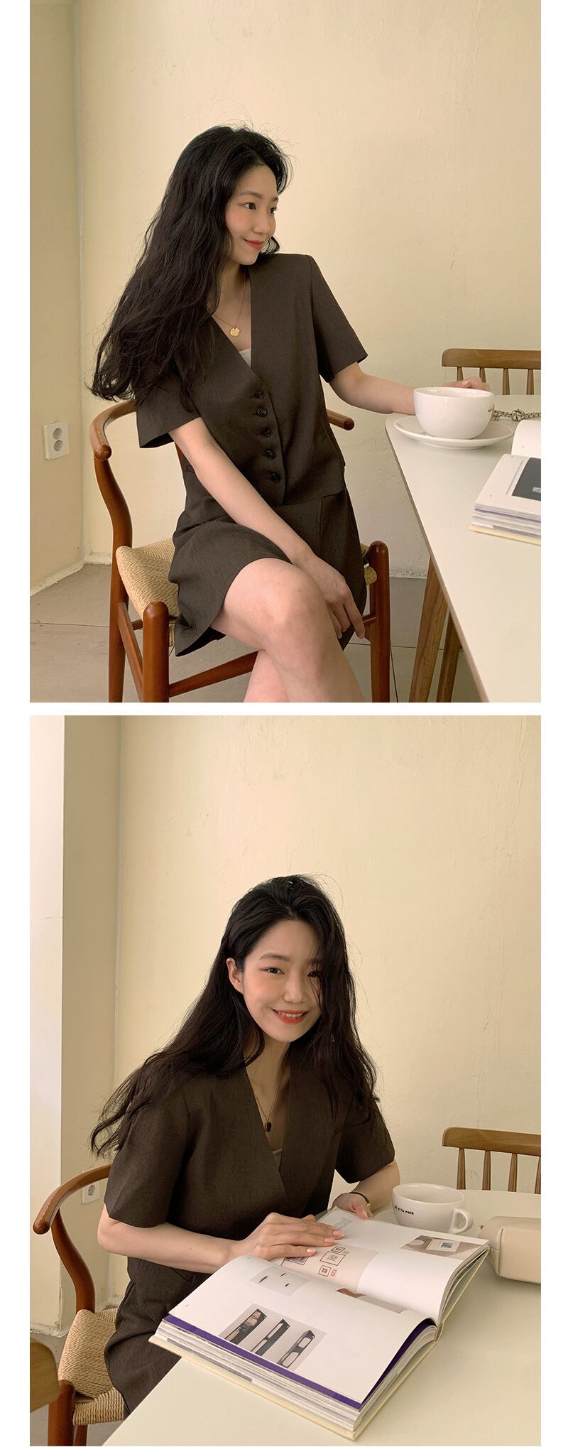 サマーVネックルーズショートジャケット スタンダードハイウェストウェストスカート レトロ 夏物 韓国婦人49460401597