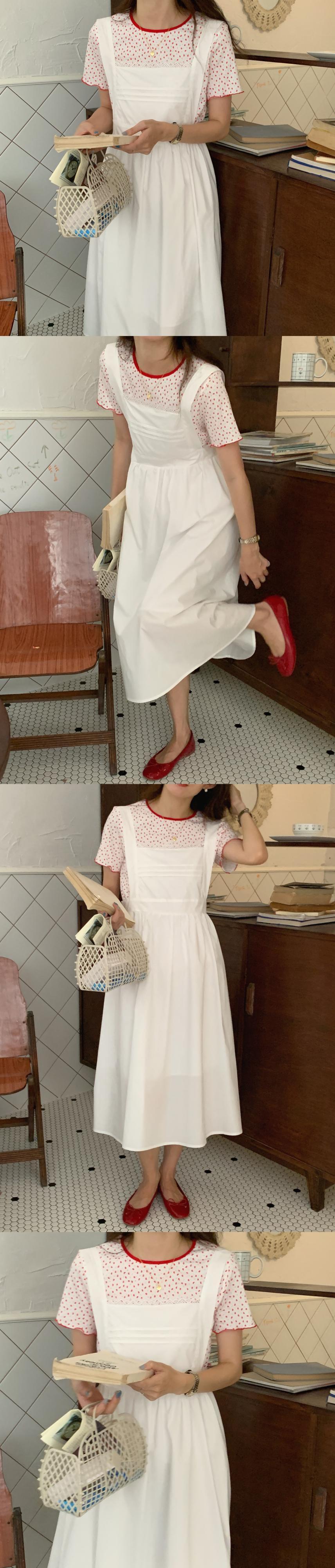 色:ブラックフローラルTシャツ,赤い花のTシャツ,白いストラップドレス,ブラックストラップドレス