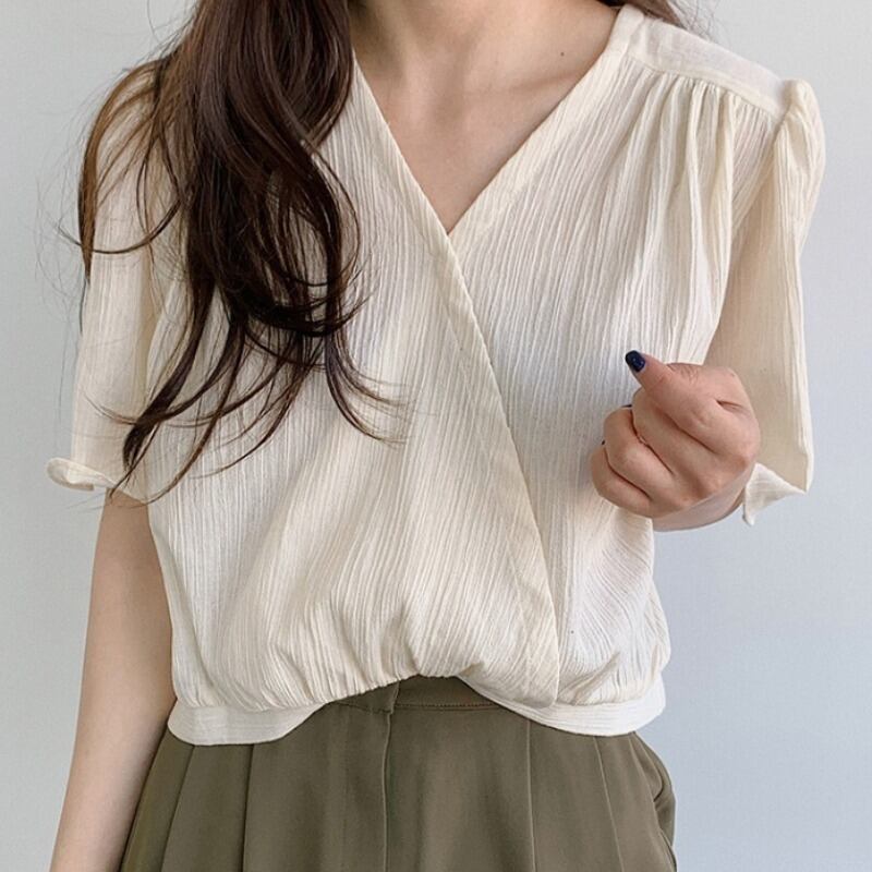 スタイルVネックルーズシフォンシャツ トップス レディース 韓国婦人73566502344