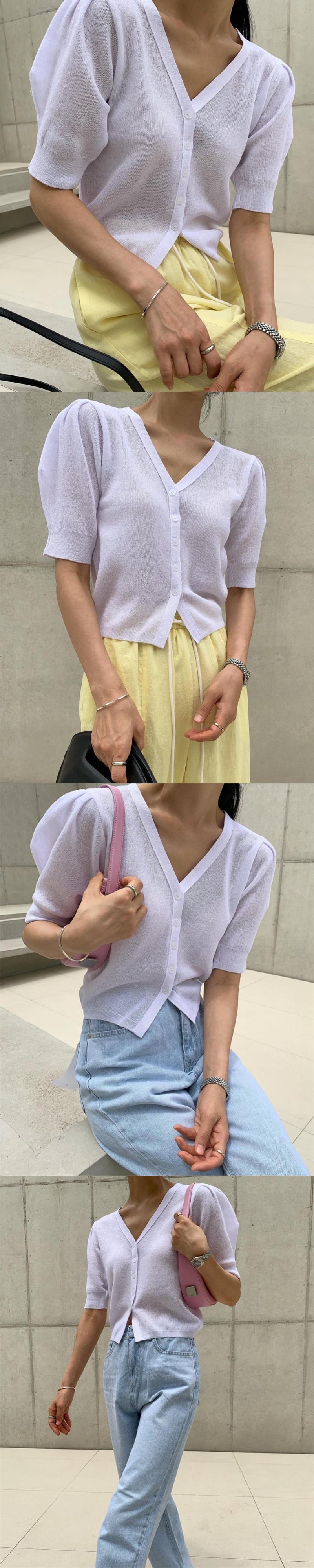 サマースタンダードVネックスリーブショート薄手スリムニットカーディガンレディース レトロ 夏物 韓国婦人84977140993